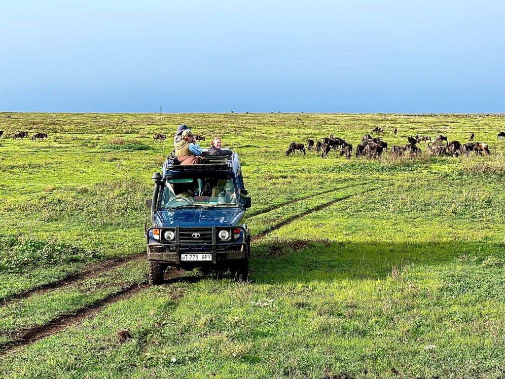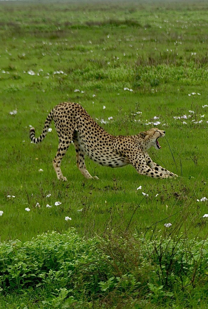 Our next two days were filled with more exciting rides on the savannah. We saw what seemed like miles of moving wildebeests. Some herds had babies and we’re on the move – others looked heavy with baby and ready to pop while still moving along. We were told once the females start dropping their off springs they all start to drop. It keeps the predators guessing with so many more options. The babies have to bond with mama as they move or they just get lost in the herd and other mamas don’t want them.