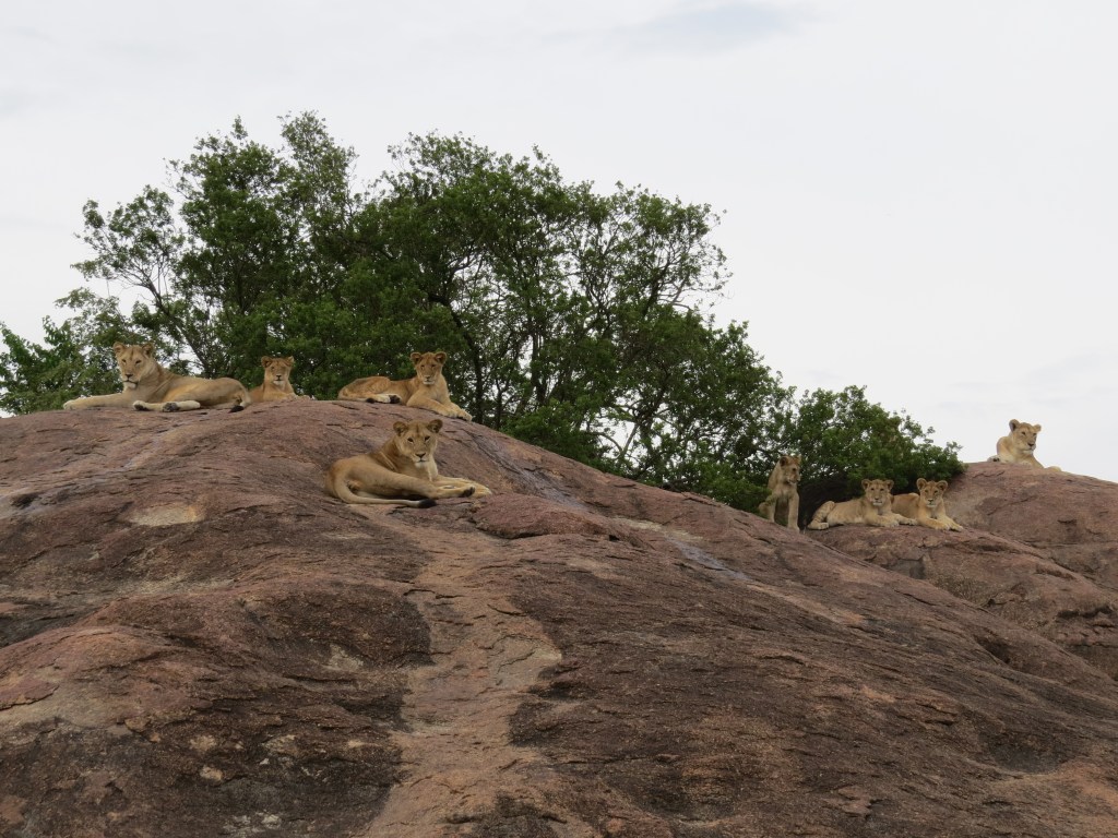Doting the savannah are the granite “rocks” called Kopjes that stick out like islands in a sea of grass. These are ancient features that are over 500 millions years old and have been exposed after the softer volcanic ash from the area volcanoes were eroded away. They provide a contrast to the grasslands and acacia trees and provide the habitat for animals, plants, caves, water and the ultimate vantage point for the lions.