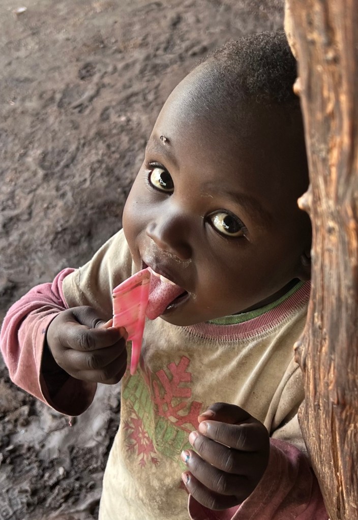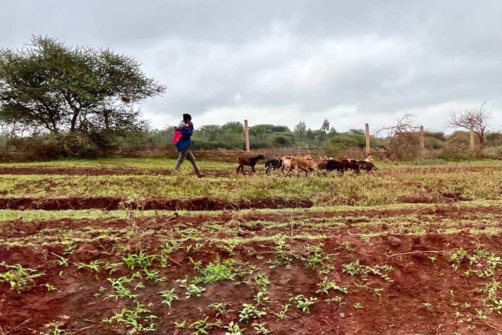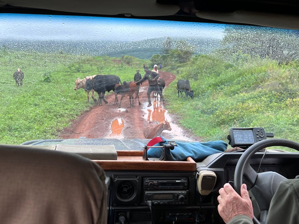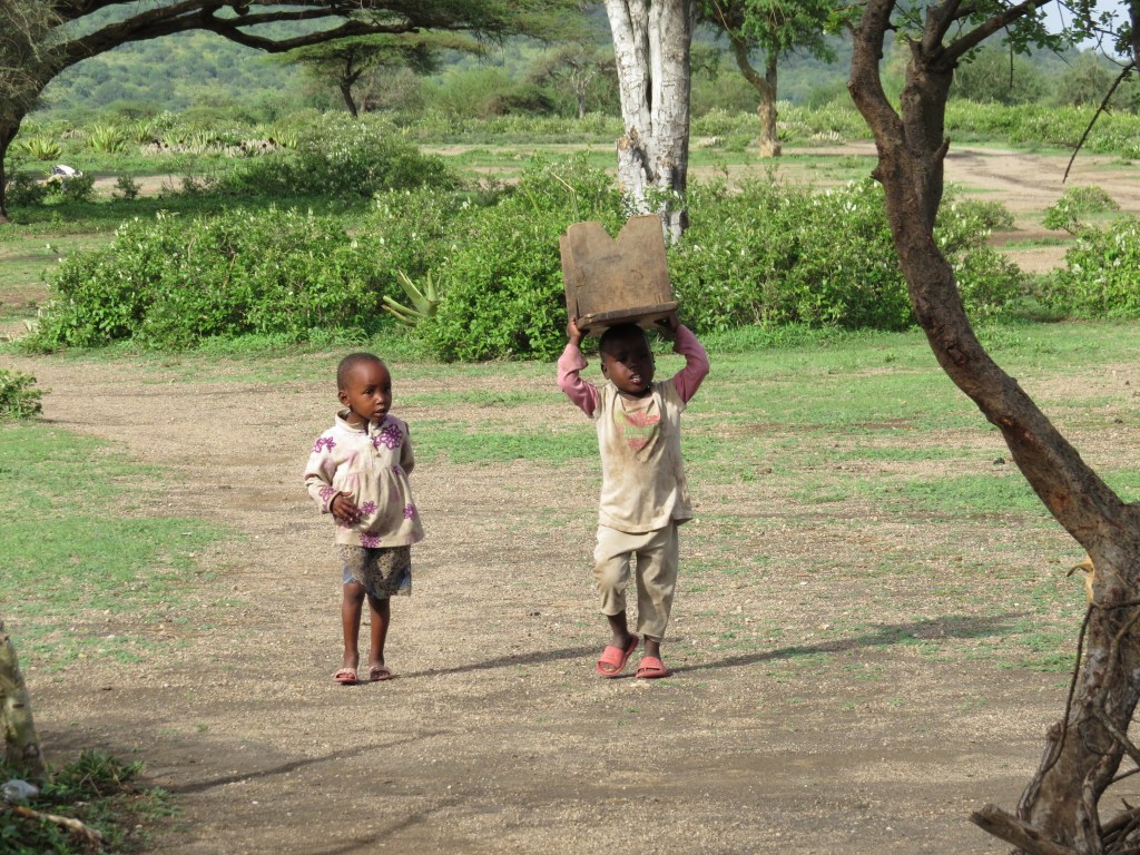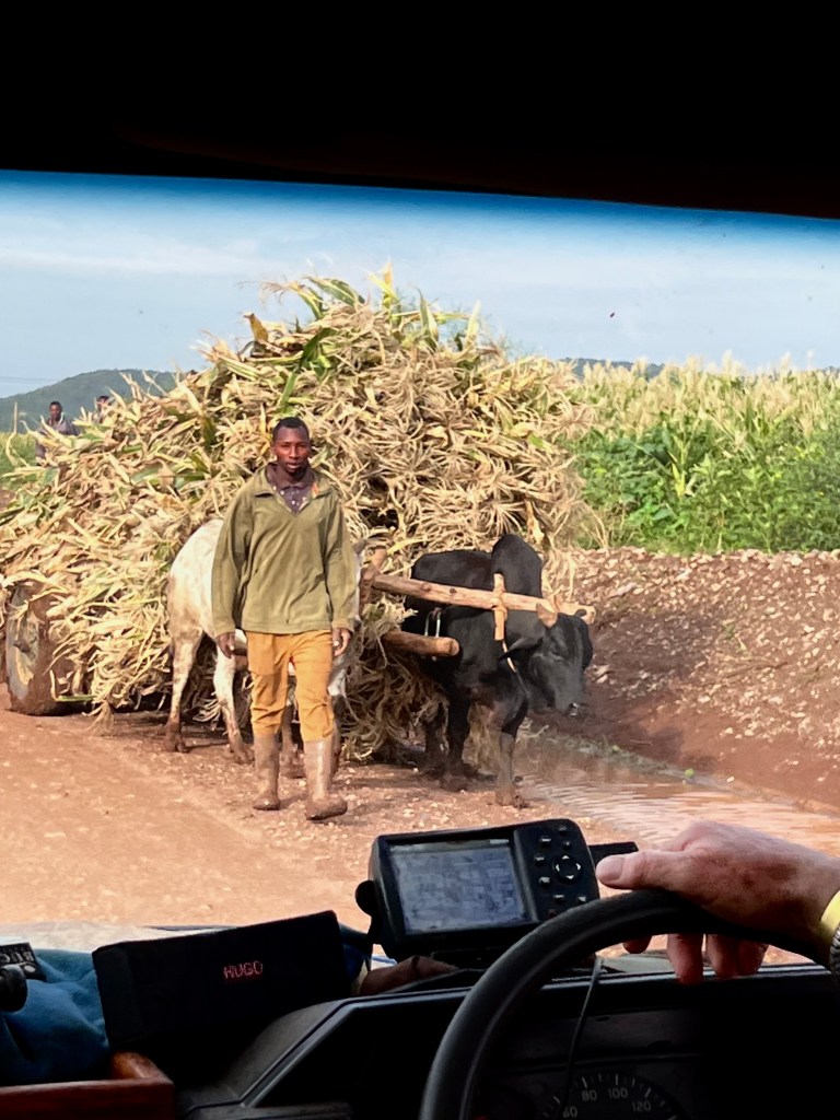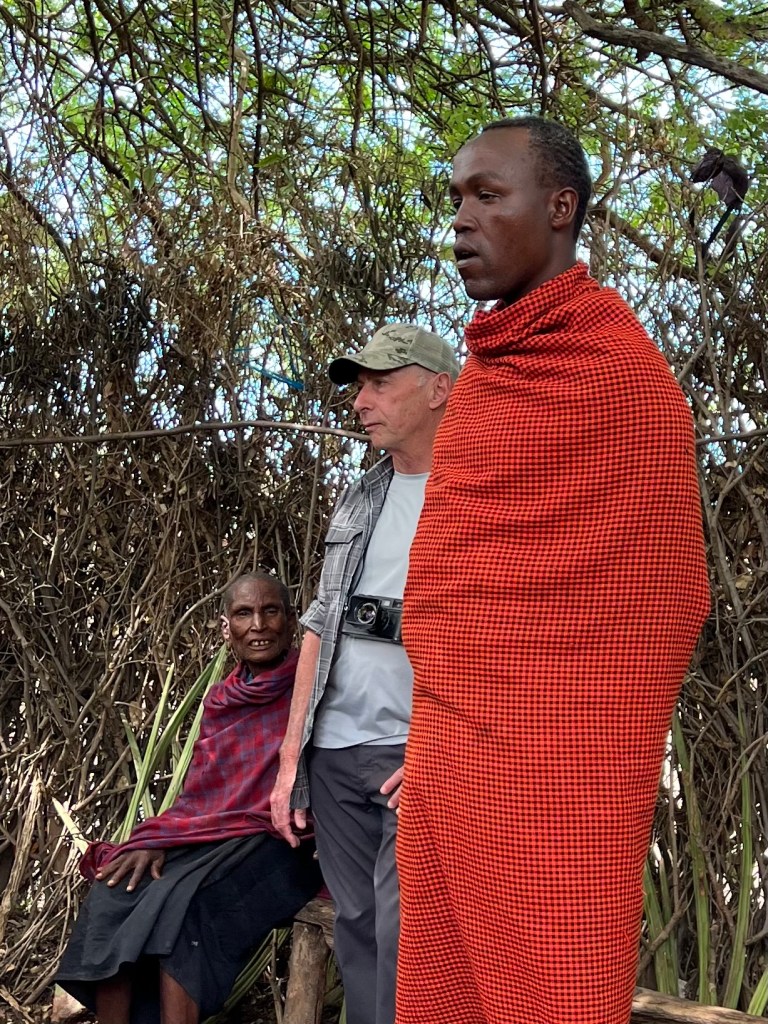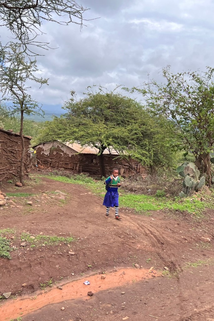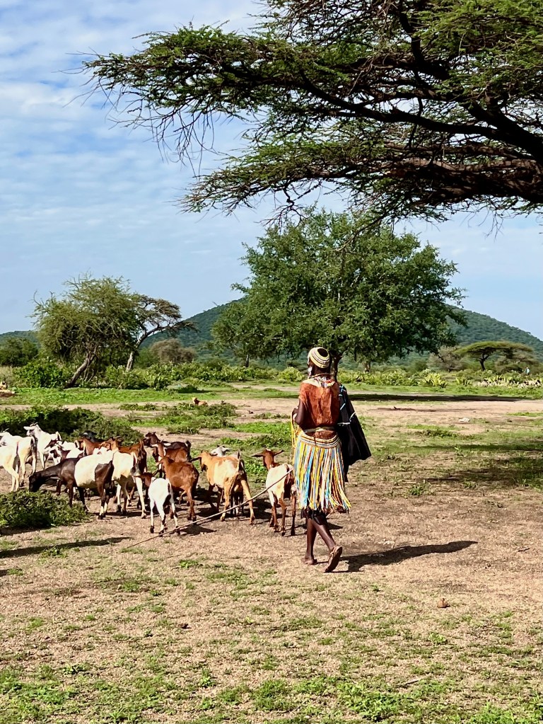 Miscellaneous photos on the drive back and forth to visit the Datoga tribe. Why a Mississippi butcher? Phil under a Datoga tree. When you don’t have a bench support use a log. The red volcanic mud is indigenous and ubiquitous. Shipping containers are often found and it seems they are used for all sorts of things. Mostly kids walk with groups of kids to school. This little girl is on her own walking in her school uniform. Phones are also ubiquitous. I thought seeing the Dakota tribe in their clothes might have just been for us but photos along the road show anything goes.