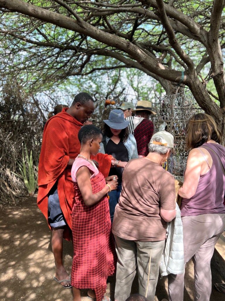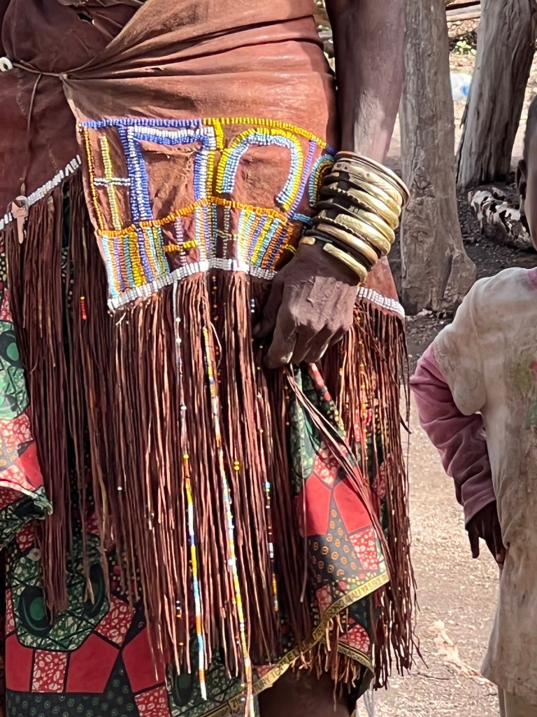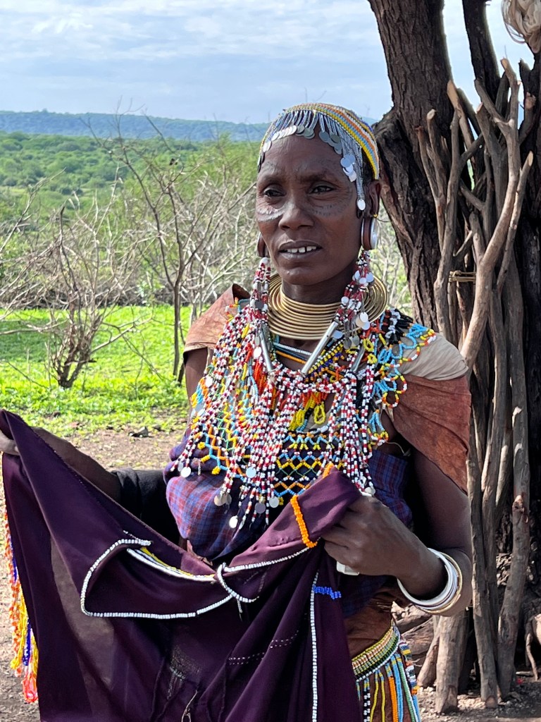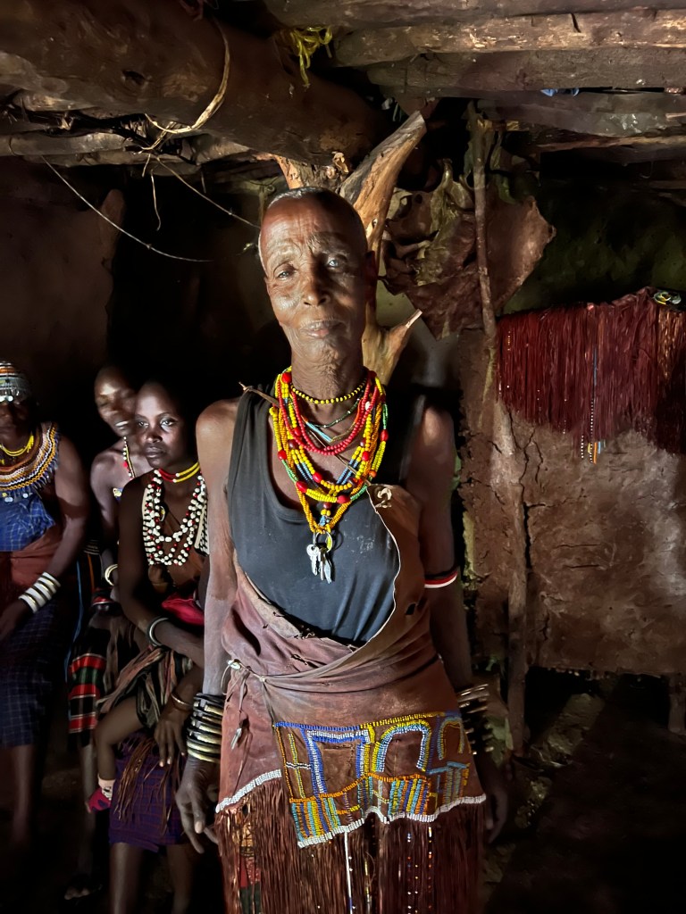 A few kids were watching us and the beautiful faces of the women including what we believe was the matriarch. Jill in our group had been to visit these women last year with Gary on a safari. She graciously brought beads from America and handed them over to the matriarch. They all appreciated the gesture and will use the beads in their beautiful creations.