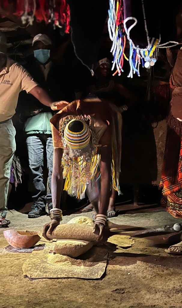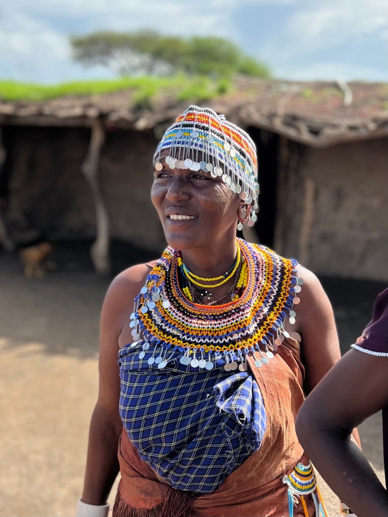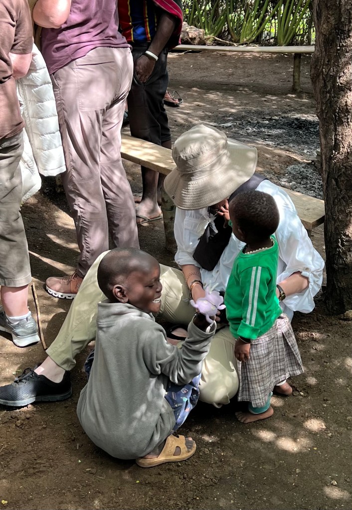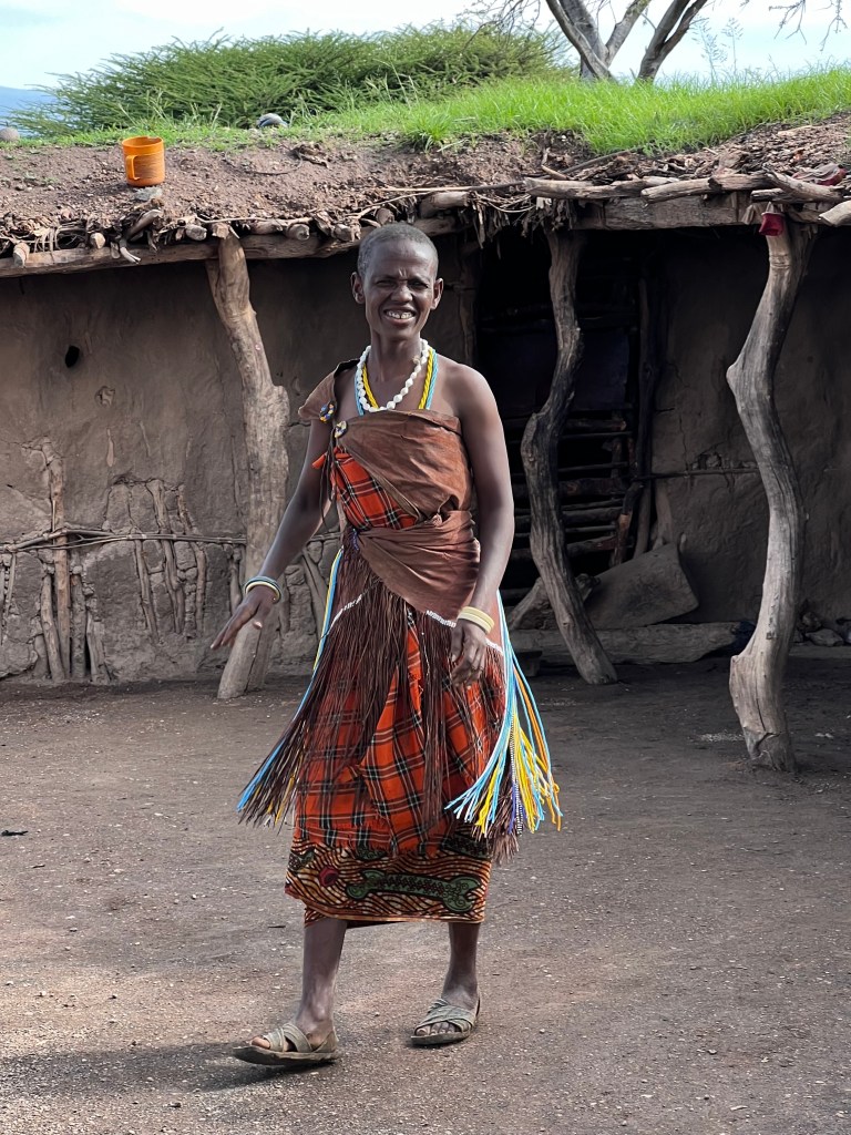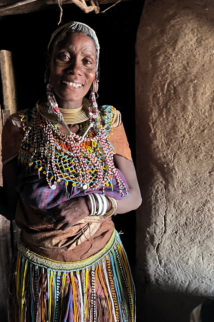 A few kids were watching us and the beautiful faces of the women including what we believe was the matriarch. Jill in our group had been to visit these women last year with Gary on a safari. She graciously brought beads from America and handed them over to the matriarch. They all appreciated the gesture and will use the beads in their beautiful creations.