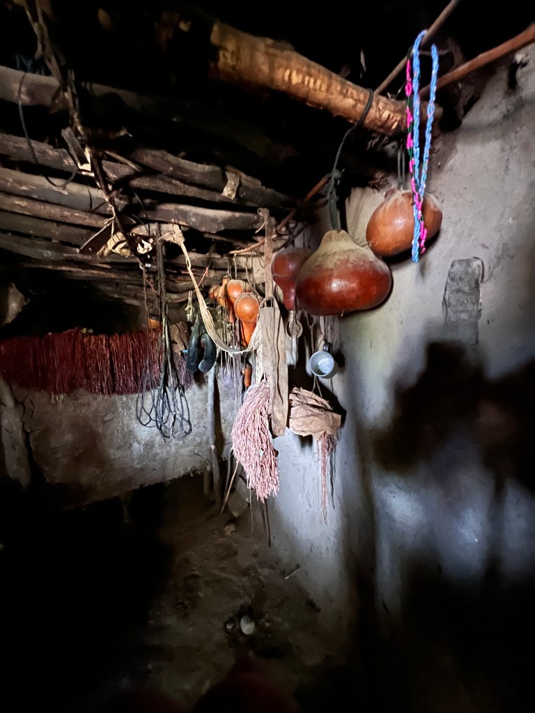 The pumpkin gourds are hung on the walls and are used to store and transport milk. The largest ones are used to collect water. I understand the largest are used to produce a local liqueur made from agave – it is used to celebrate weddings or funerals.