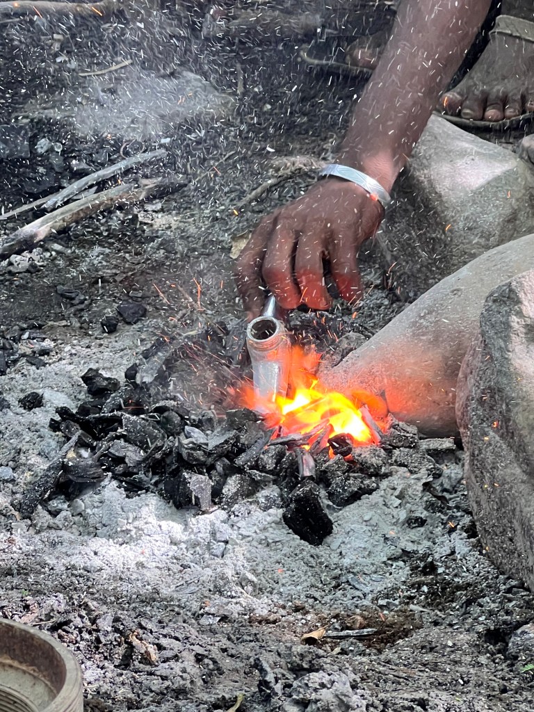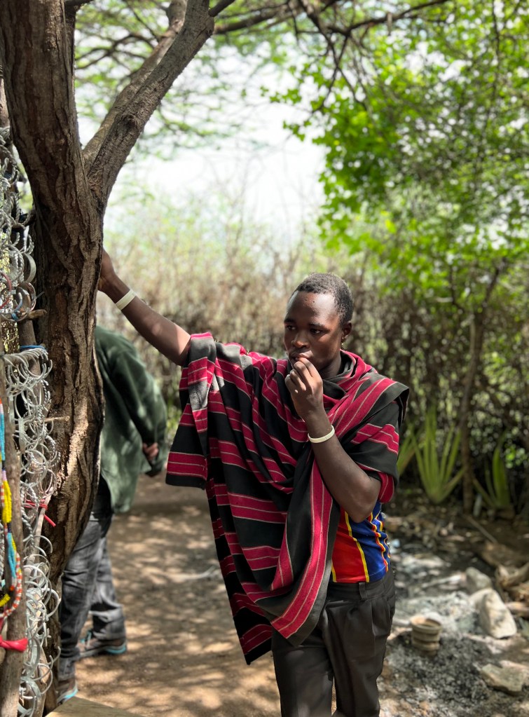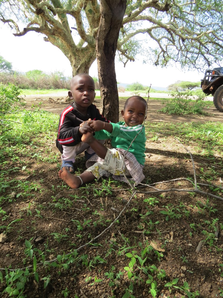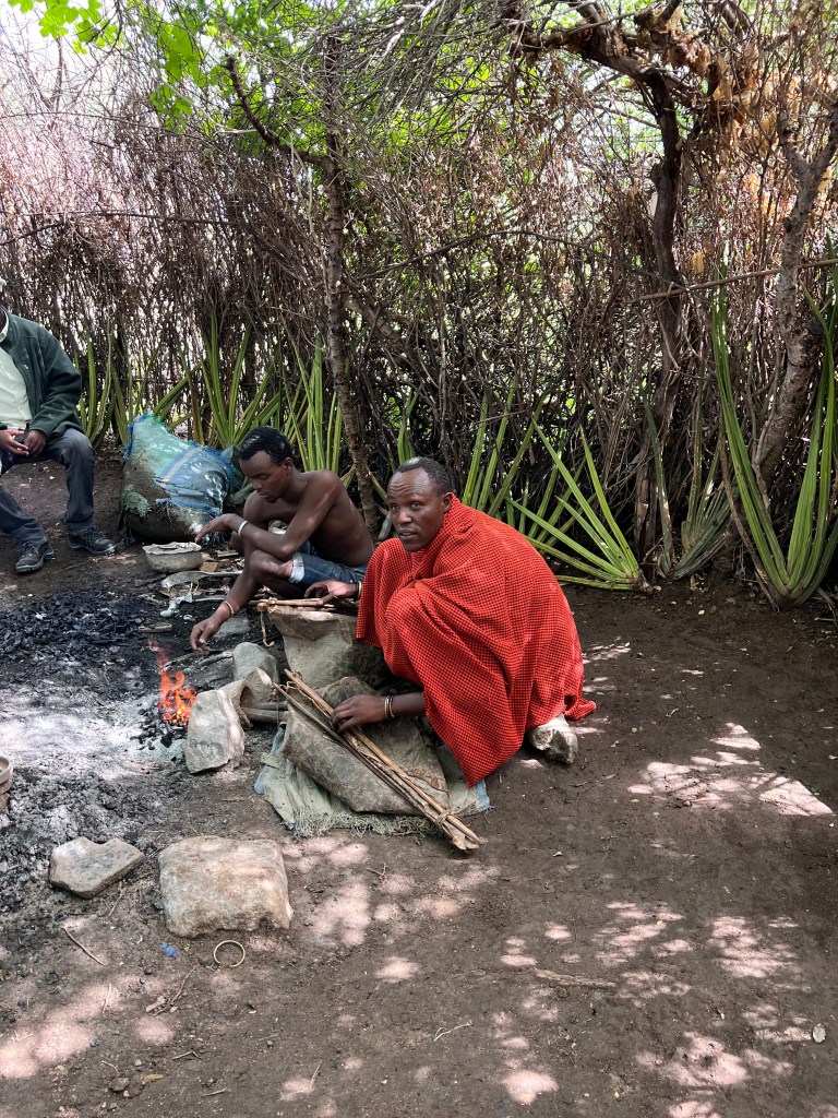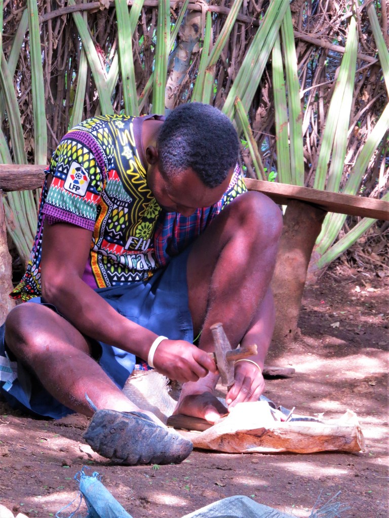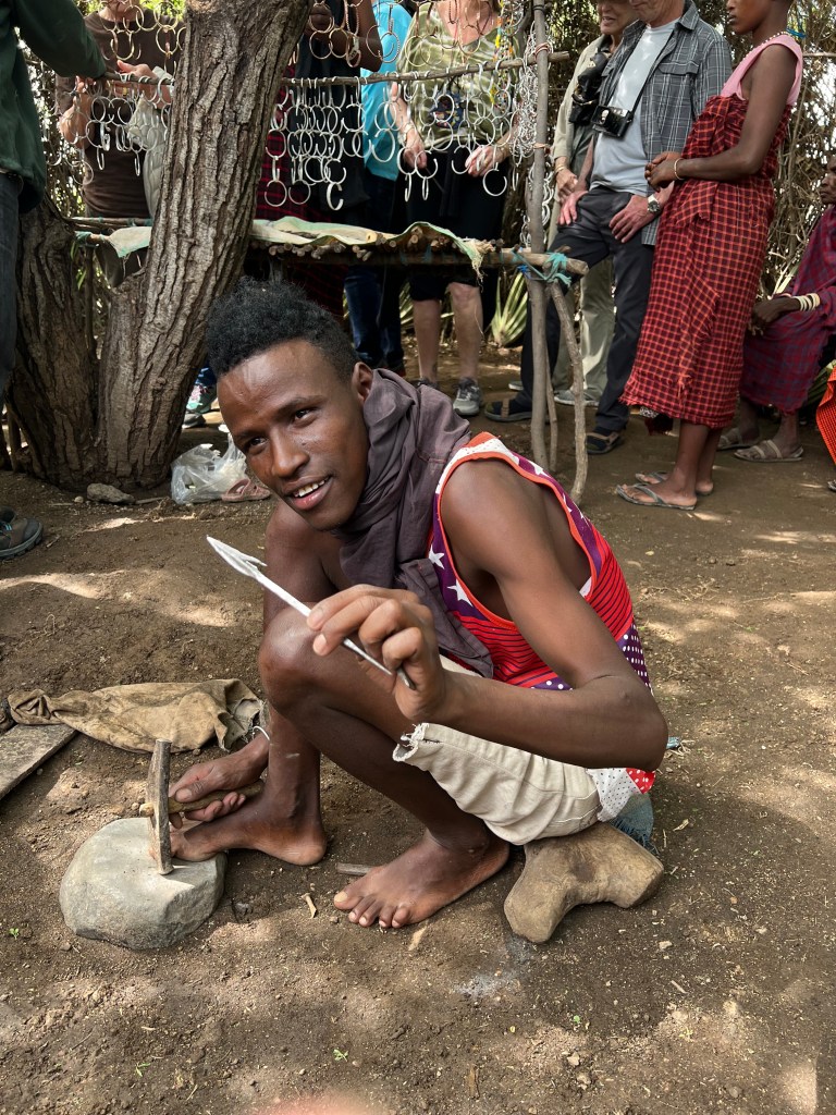 The Datoga men showed us how they used their bellows to heat up discarded plumbing faucets etc to melt and manipulate the metal. They use what they can to create jewelry or needed metal items like arrow tips and hooks to exchange for honey or money. I loved our orange adorned gentleman who looks like OJ Simpson and whose undergarments were jeans rolled up and our sober faced guy in red and black with his soccer shirt and also one standing with his son. Michael even bought himself a copper bracelet and wears it.