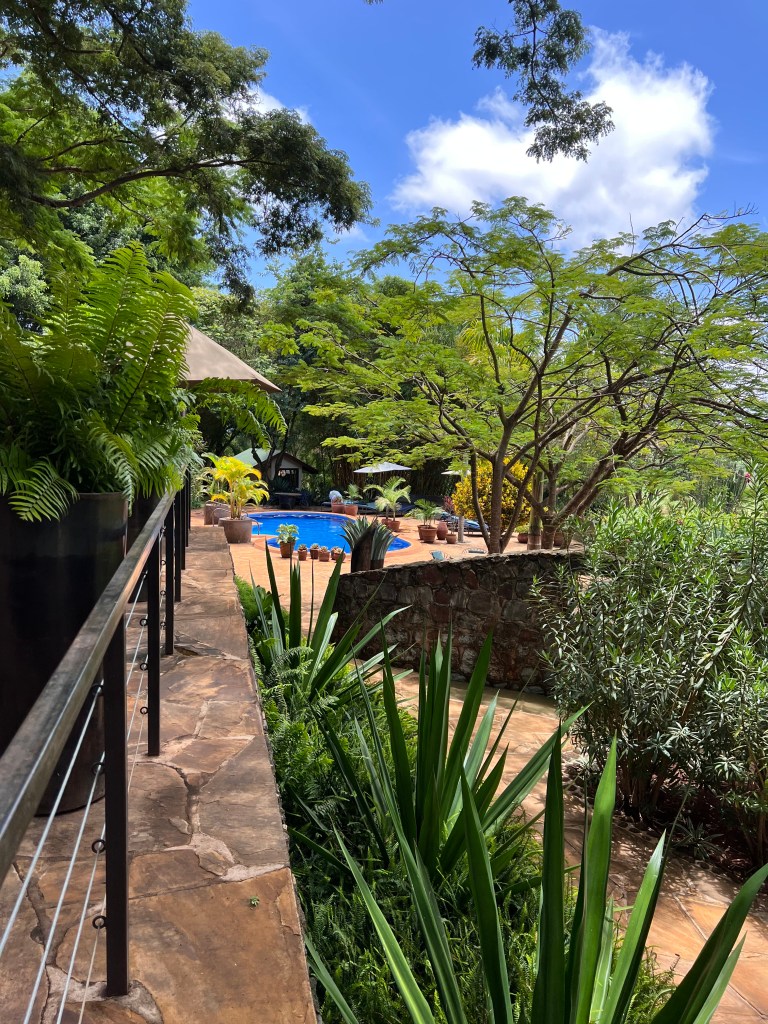 We came back for a beautiful outdoor lunch and an afternoon of down time. Tropical flowers grace all the pathways around the lodge. Walking around to soak up the tropical flowers and take photos was calming. We had the opportunity to get a massage on our down time. Mine was followed by a nice soak in the tub before dinner. Some folks had pool time as we went from a rainy entry day to a sunny midday at the lodge. We were all able to repack using our freshly laundered clothes. Late afternoon we could hear distant thunder and see the clouds build.