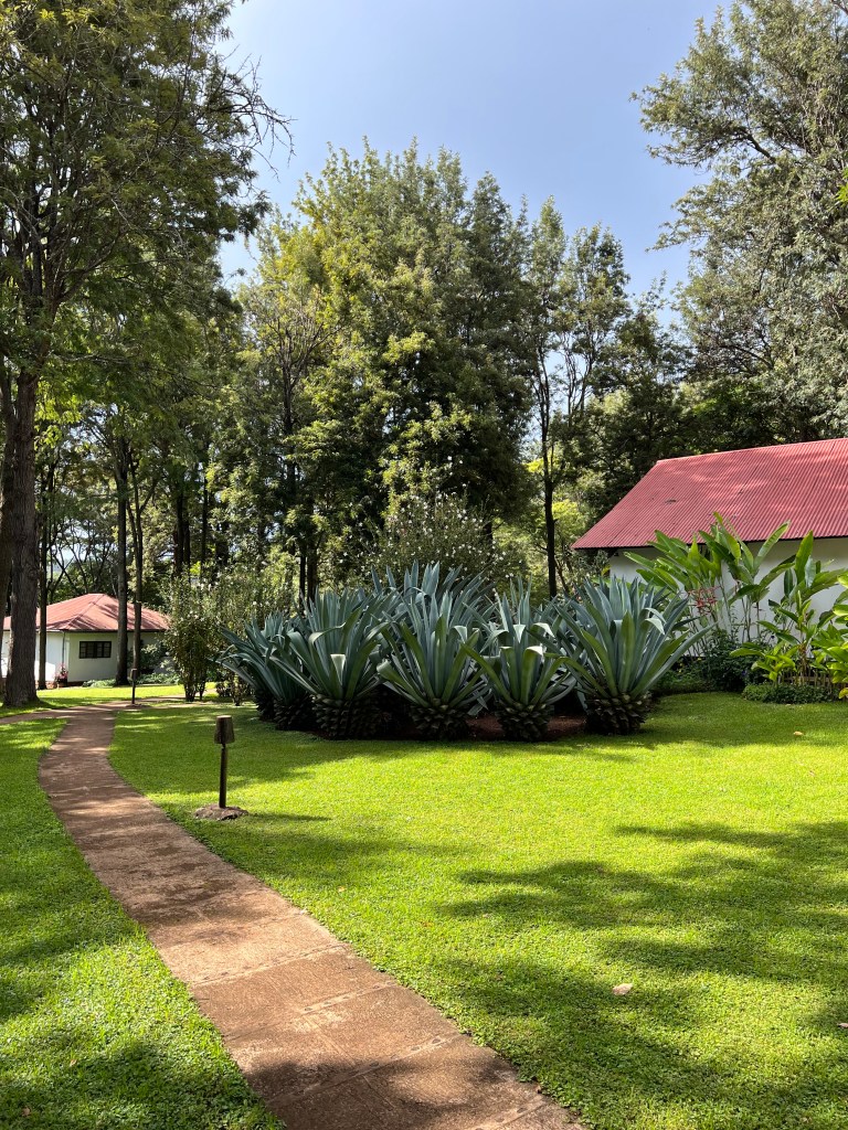 We spent our first night at the Plantation Lodge in Karatu where we arrived late afternoon after our full day in the Ngorongoro Crater. We each had a part of our own house. We were Blue Mountain at the Coffee House. The far side of camp folks we’re once again relegated to walking the farthest. Ralph and Deborah Mcleran who were always in tent one were in the right side of the Coffee House. Our room had a shower and a bathtub. A yummy bathtub! The big cat paws were in the concrete as we walked back and forth. Not sure if they were real but it did makes us very aware of where we were. The Lodge was totally fenced and seemed secure but you never know!