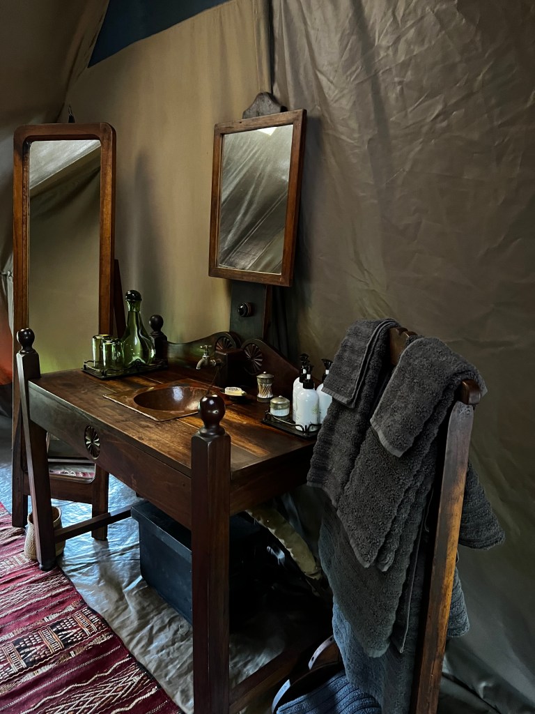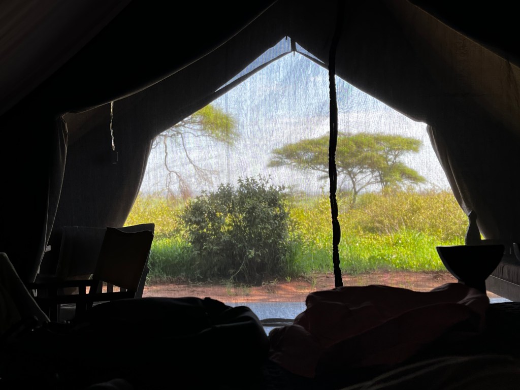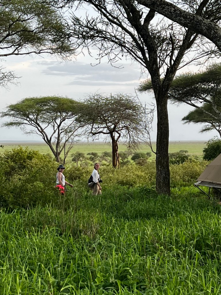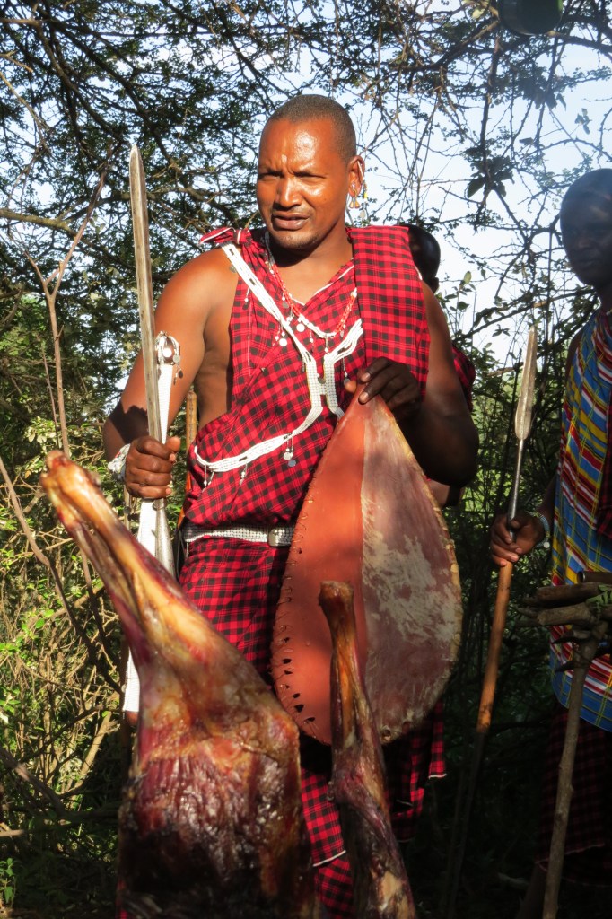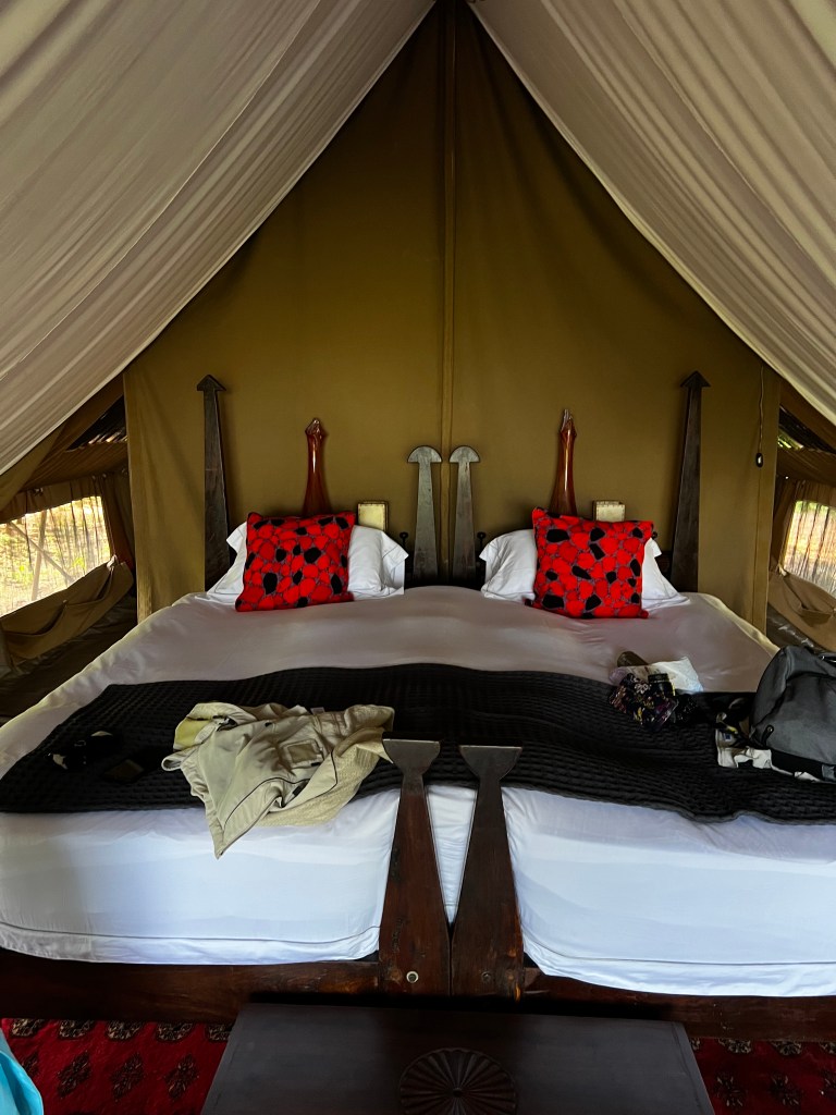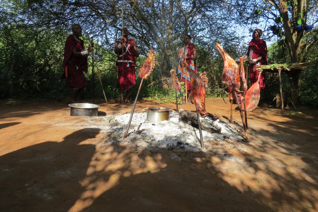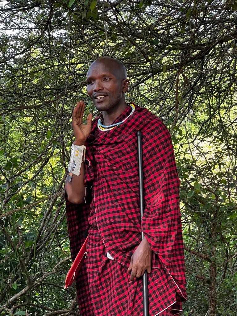 When we were settled into our tent we were hosted by the Maasai team to have an experience of the traditional Olpul. The team had been preparing goat for us all afternoon. Oh joy! We did taste it – my oh my, the goat stew might have been more tasty with longer prep time and more spices! However I did enjoy the goat ribs as it was more like jerky – the liver stayed on the board when it came by my location – not thanks. We were shown how they start fires and how to stir the soup properly. Within this Boma we were also shown their “cots” where they would traditionally sleep. Michael and Larkin took a walk to be shown the native plants that are used in traditional medicines. They also did a traditional dance – Maasai men can jump!