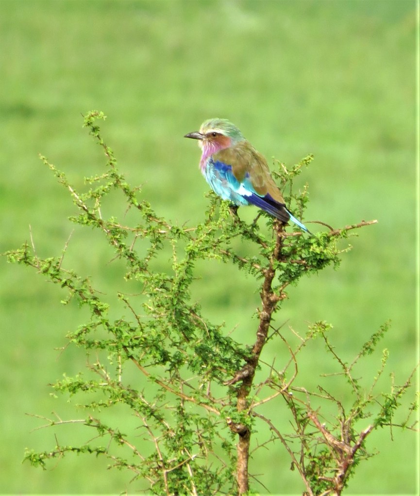 The baboons were busy grooming, nursing, cuddling and showing us their various parts. Like the Ngorongoro Crater we stayed on the dirt roads and these baboons were on the road as we headed south to our camp. We did see other vehicles and stopped along the road observing herds of elephants. We arrived at a terraced picnic area called ​​Matete which is an area overlooking the river that had some shade and picnic tables to enjoy the view. That area was “rare” with toilets available. After our lunch break we descend toward the river for a change of perspective driving toward the southern part of the park, where the marshy area known as Silale (Silale swamp) shows quite a different vista across to volcanic rocks in the distance. Our new camp was awaiting us…Osunyai Lamarkau. But there were birds along the way…