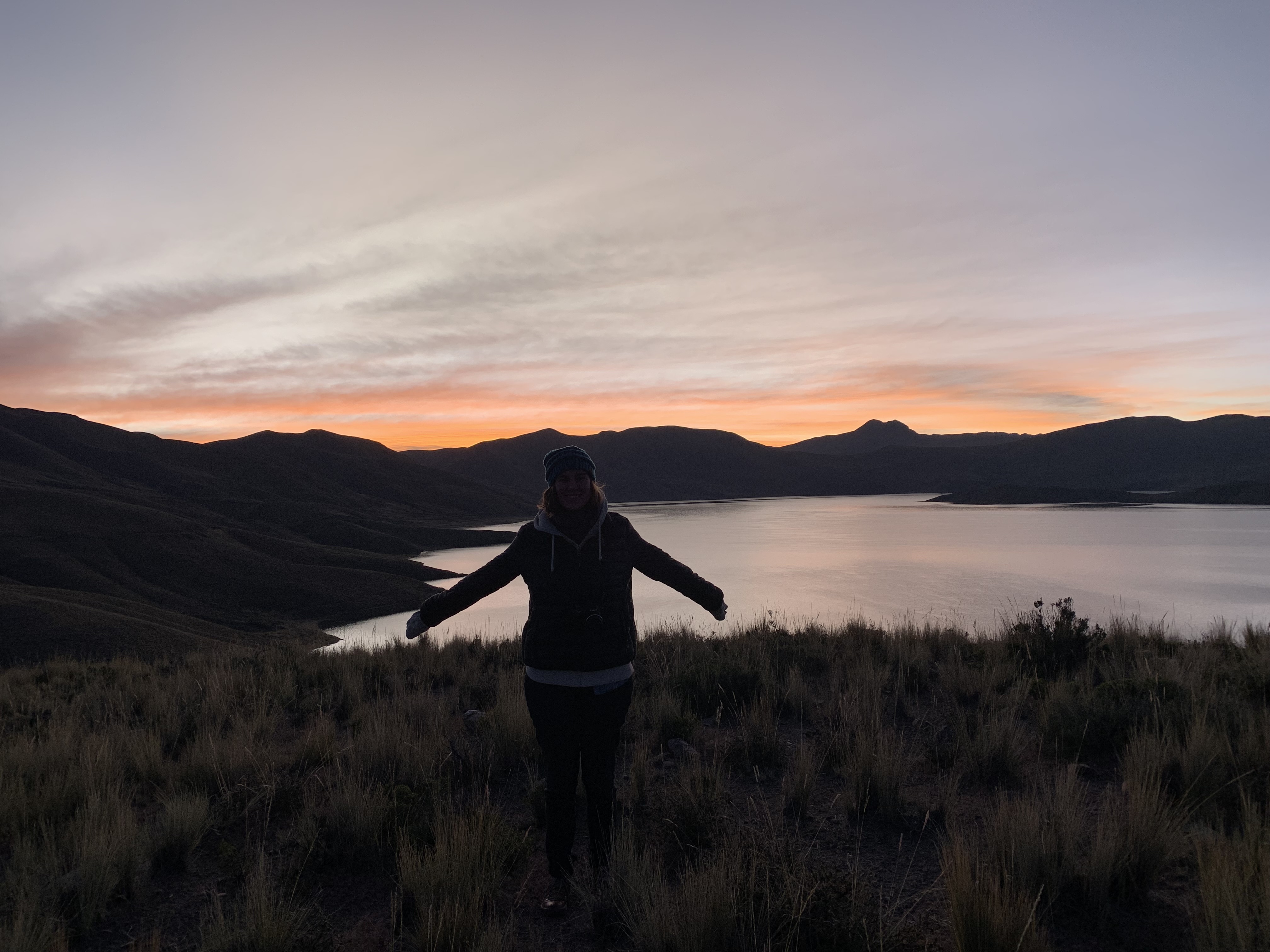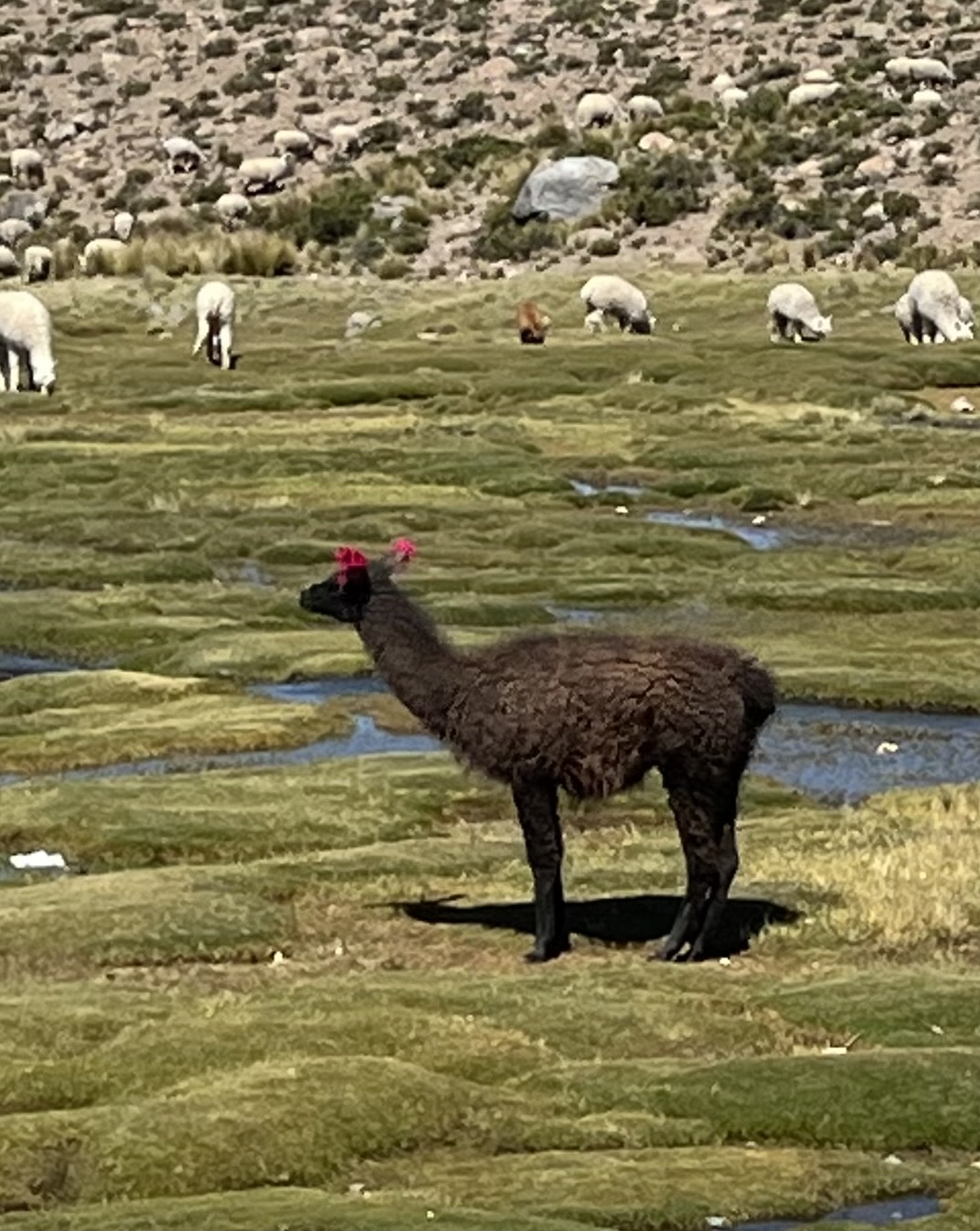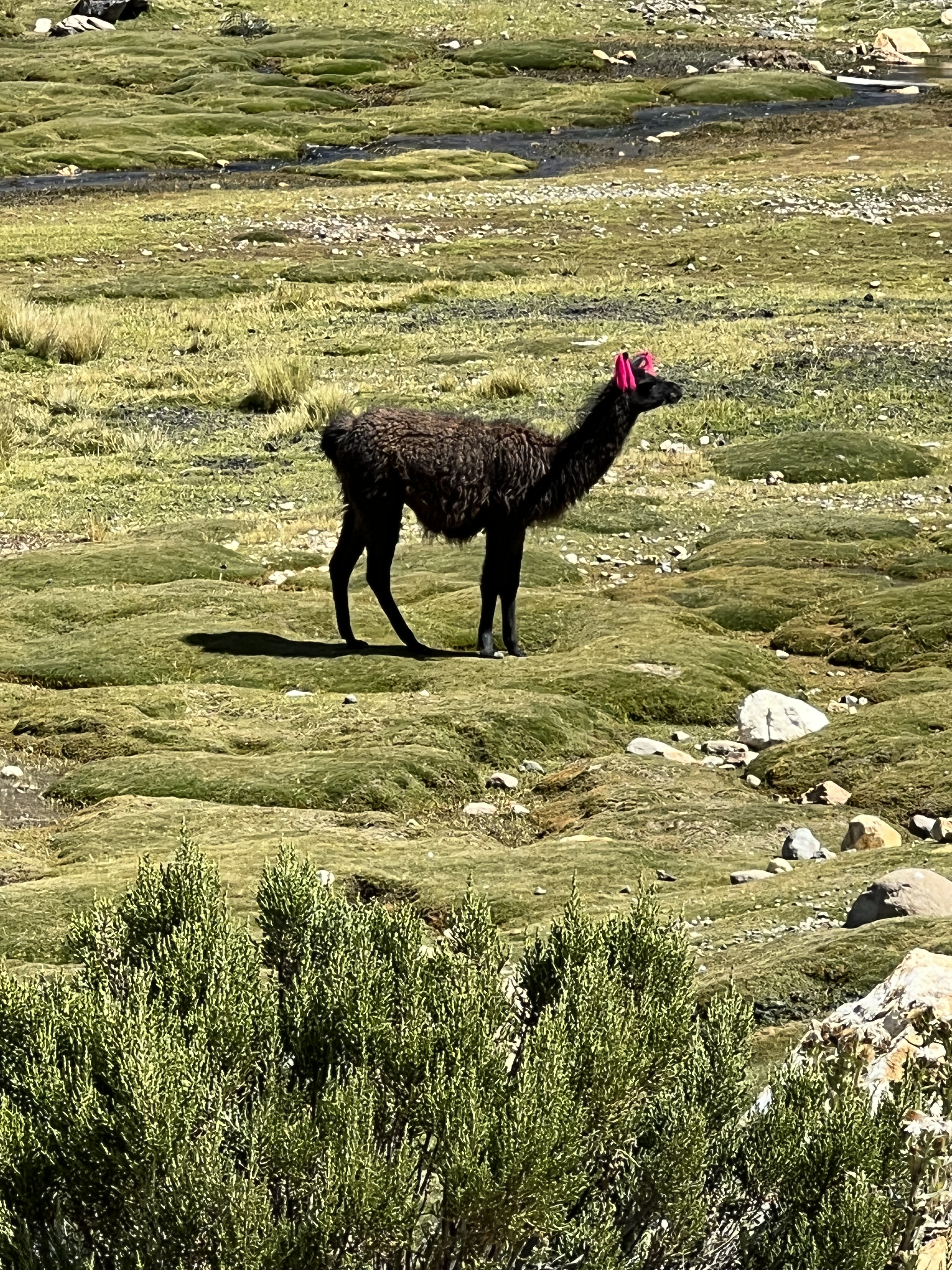 We had some time after the Uros Floating Islands to walk through the market on the pier before we took off to continue our journey. They have the cutest llama and alpaca soft fuzzy creatures! Then we took off to stop at Lake Saracocha for the overnight so a sunrise would await. I figured – NOT – as we had to hike at this high elevation more than 13,000′ and we still had caves to visit. Larkin made it up to the hill above the lake and our train with the few who did the hike and she took some good photos!
