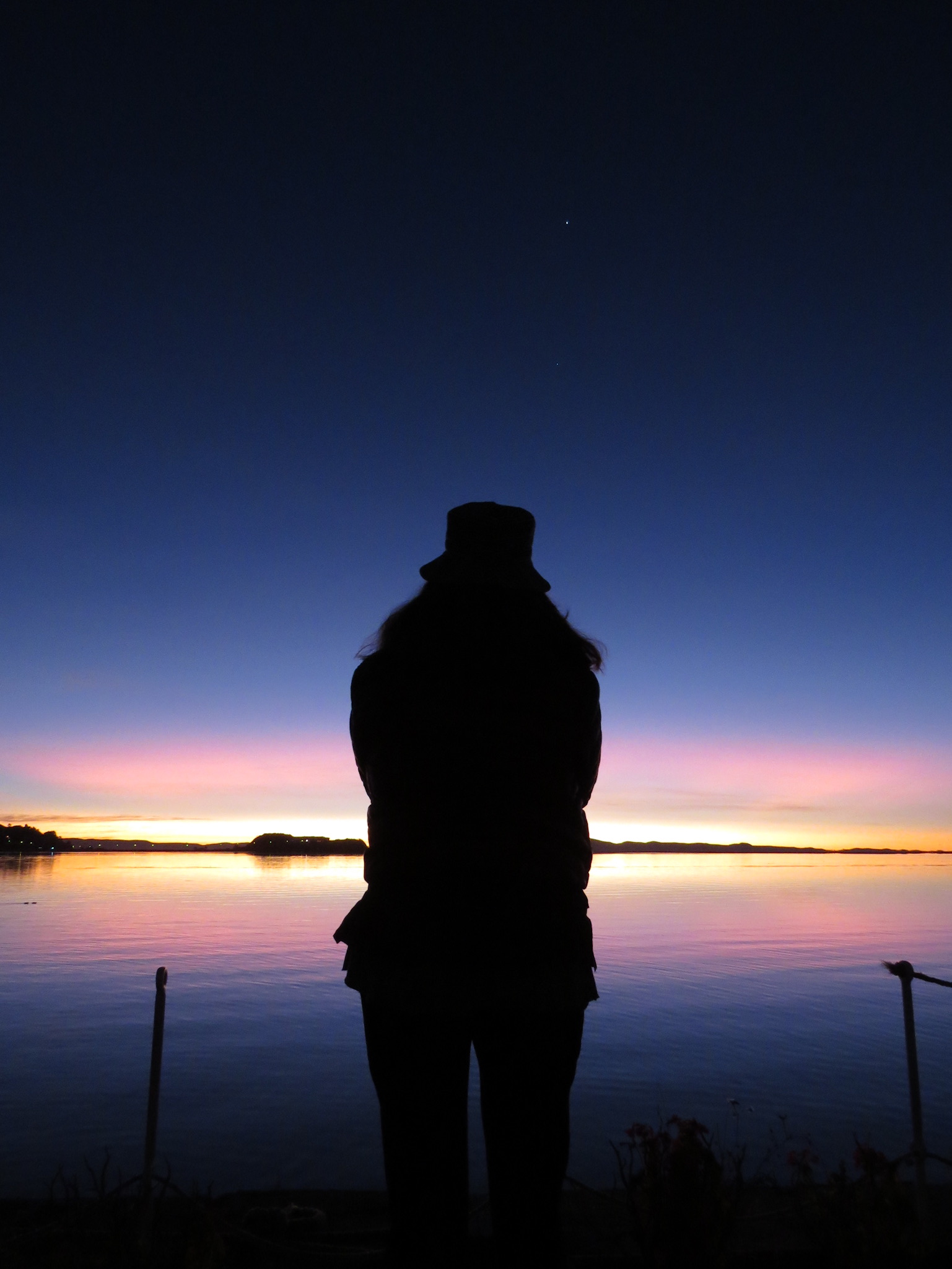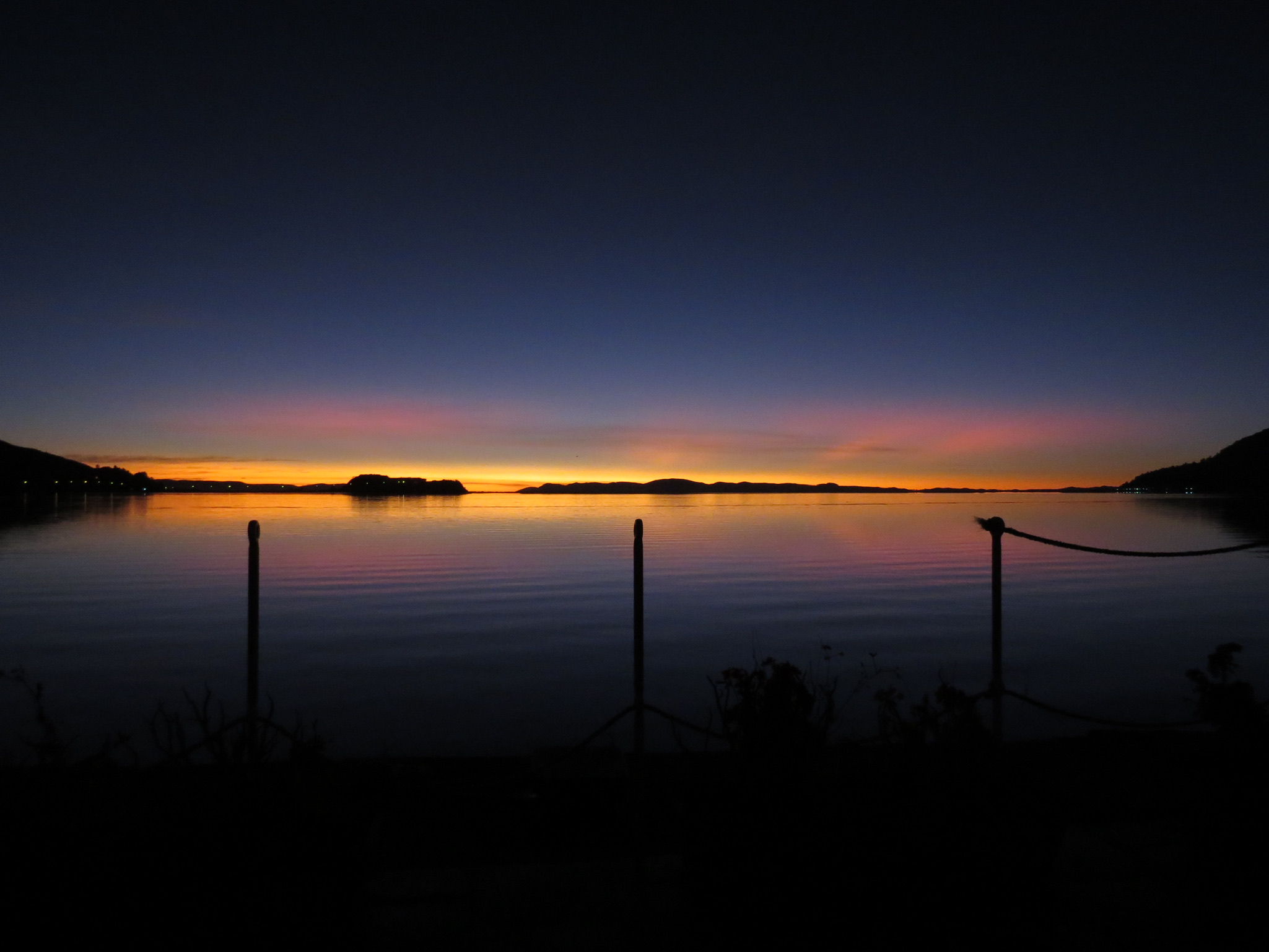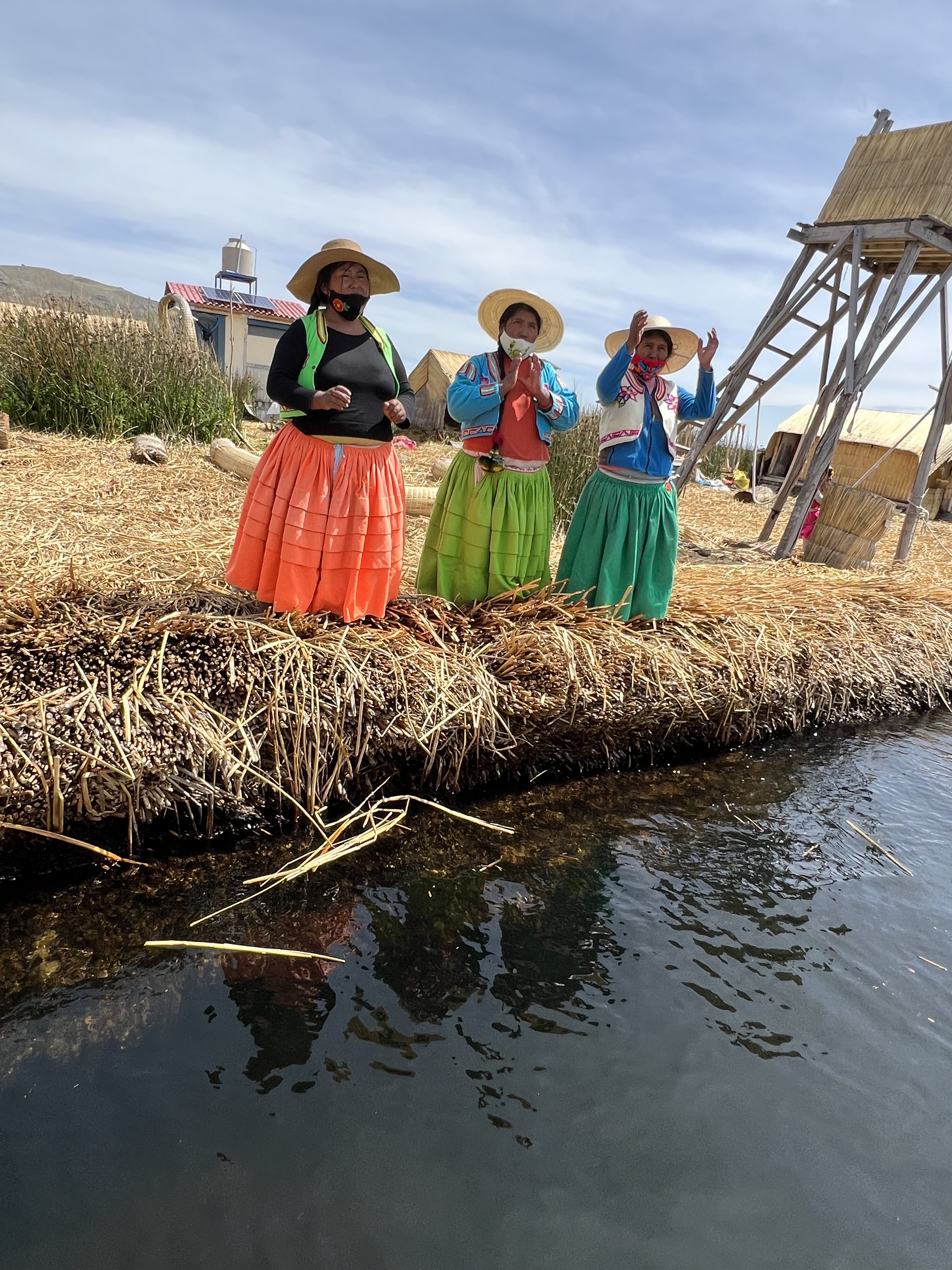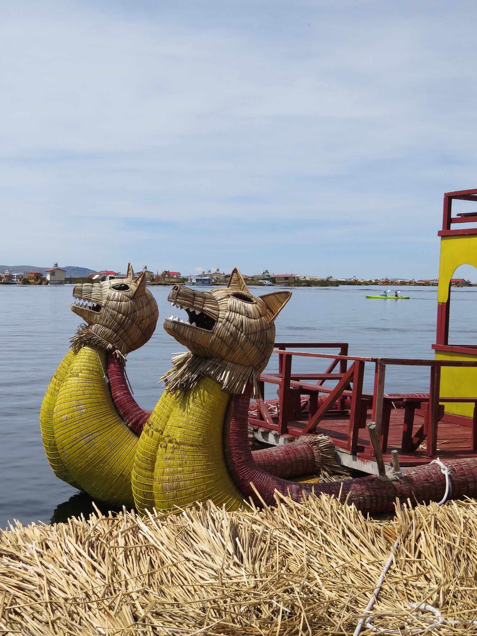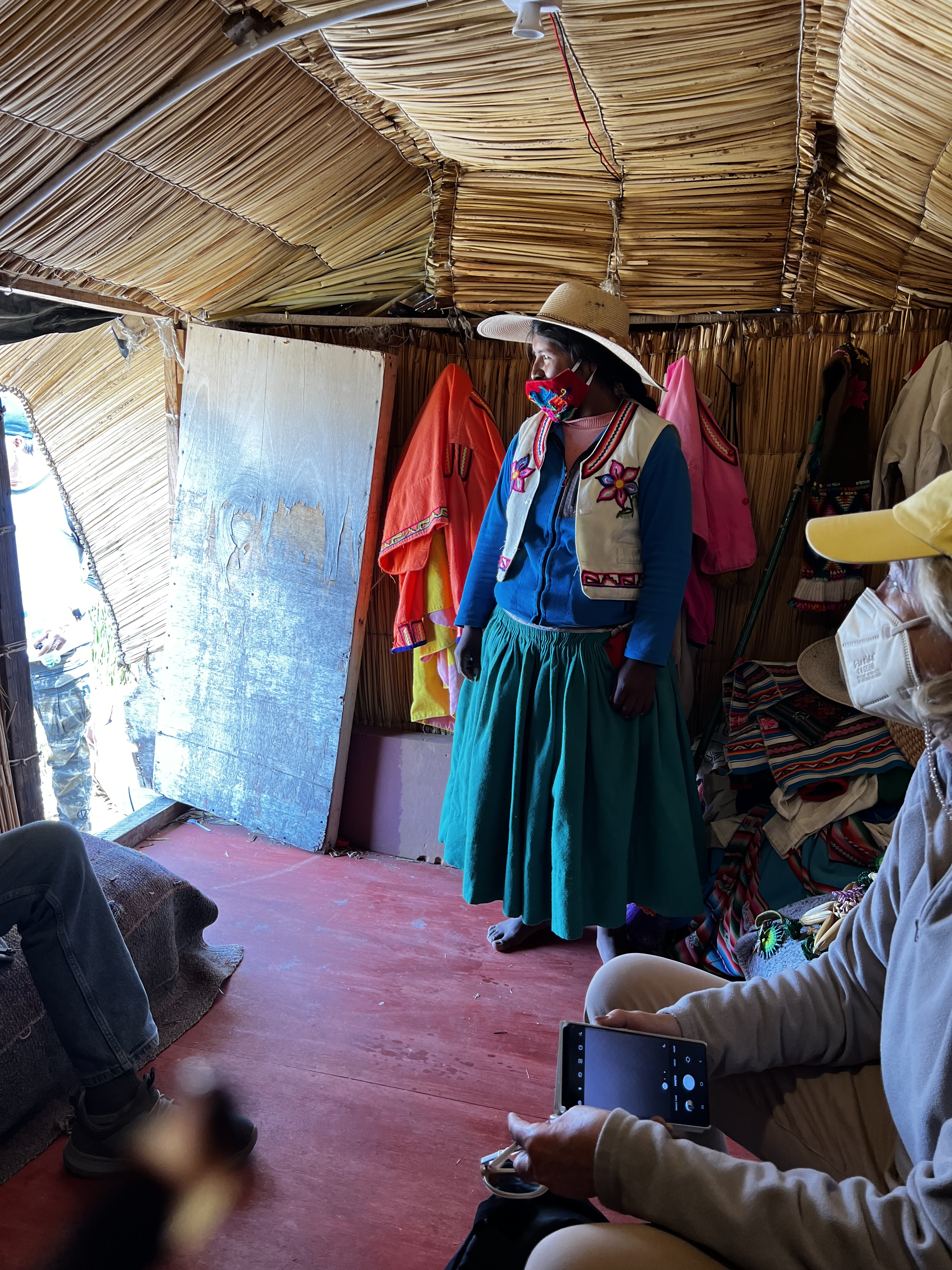 Sunrise over Lake Titicaca – a short walk down the pier as the train had pulled into a pier on the lake late in the night. It was an early, cool morning with coffee and tea and burning logs if we wanted to stay warm. Breakfast awaited us when we walked back to the train. We had a few hours before we boarded boats to head out to the floating islands of Uros near Puno in the Lake.