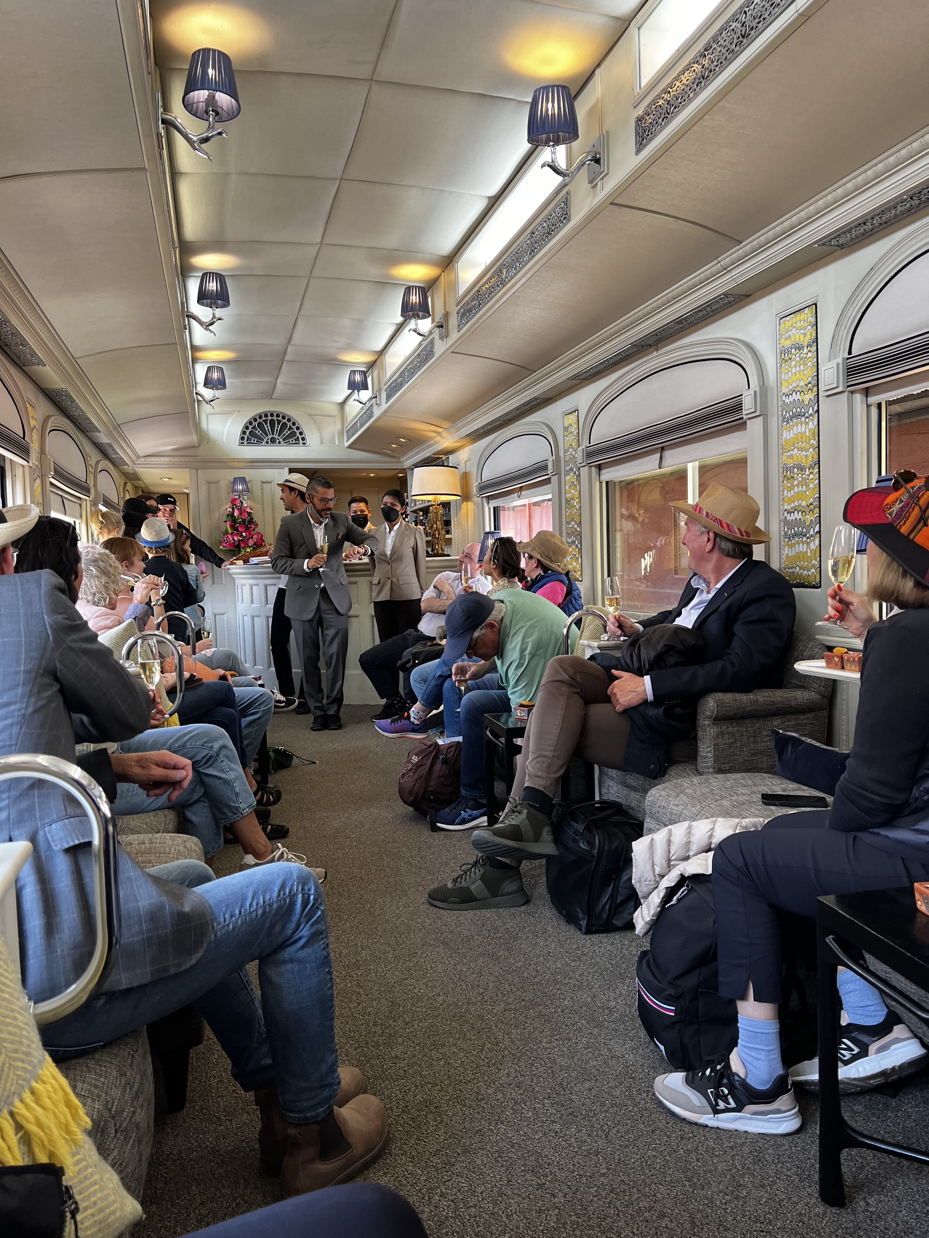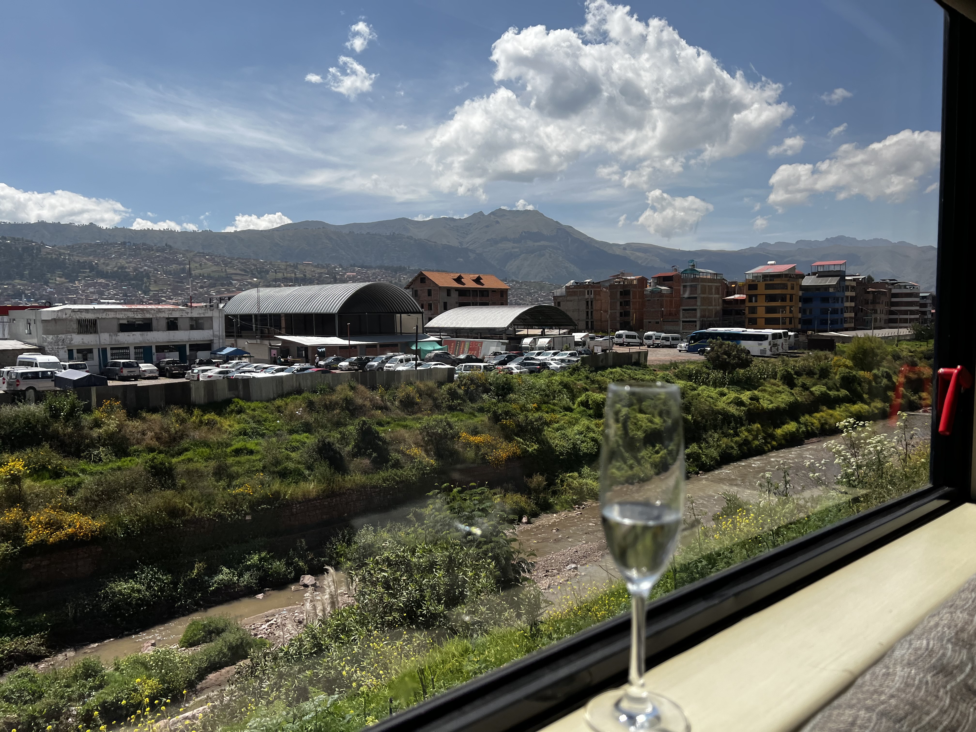 We could enjoy a drink, spend time in the Observation car at the rear and enjoy the panoramas over the snow-dusted La Raya mountains. The food was very well designed Peruvian Andean fare. The chefs knew how to use the local ingredients to create delicious potato or corn or quinoa along with a delicious meat or bird.