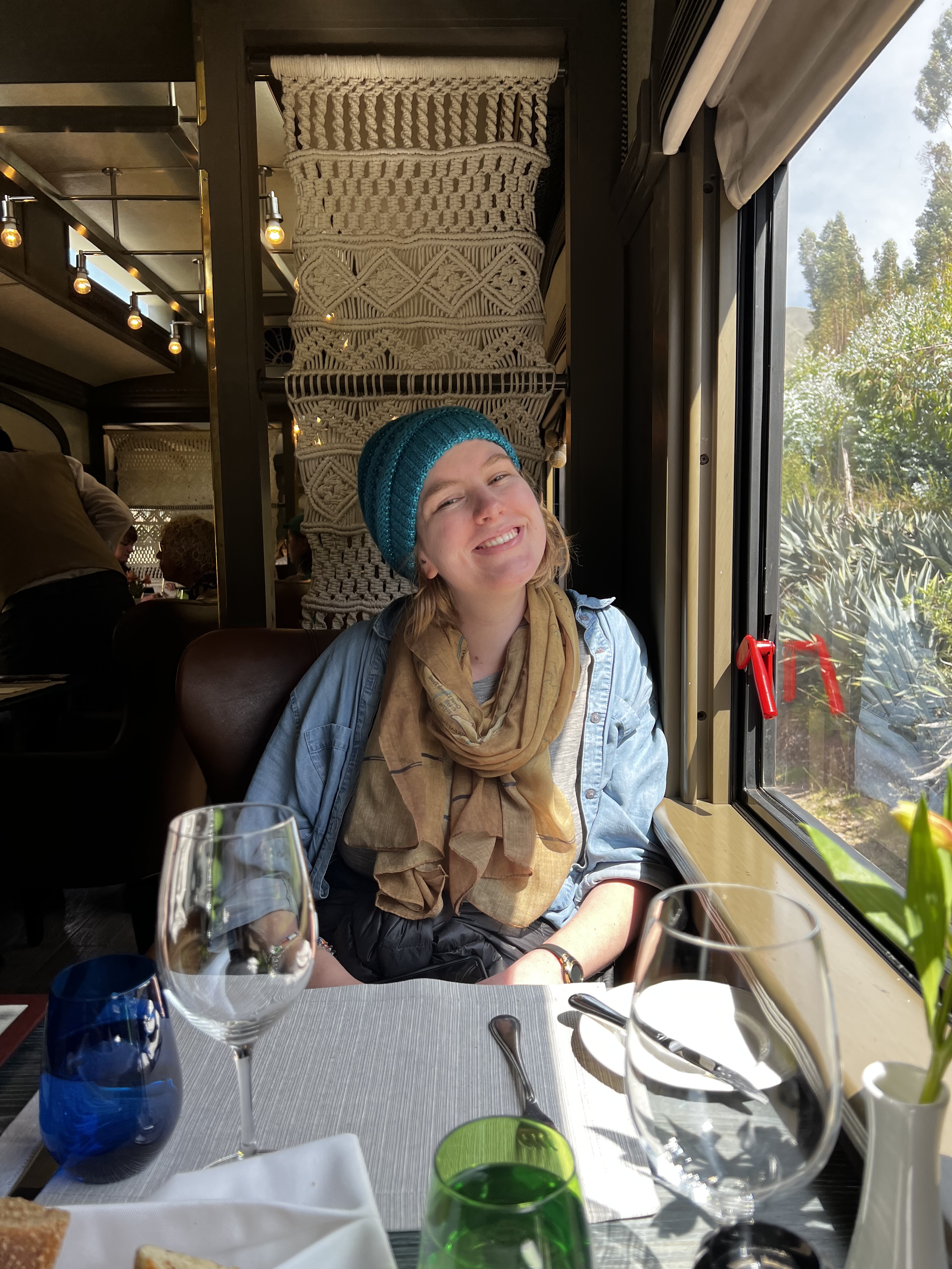 All the rail cars were named after plants. Yareta is a velvety chartreuse cushion plant which is native to South America and very slow growing. It grows in the Puna grasslands of Peru. Our room had two small twins and a bathroom you could almost turn around in. We also thought it was a hoot we could hear the room next door chatting in English through the vents…but with my hearing it was a mumble!