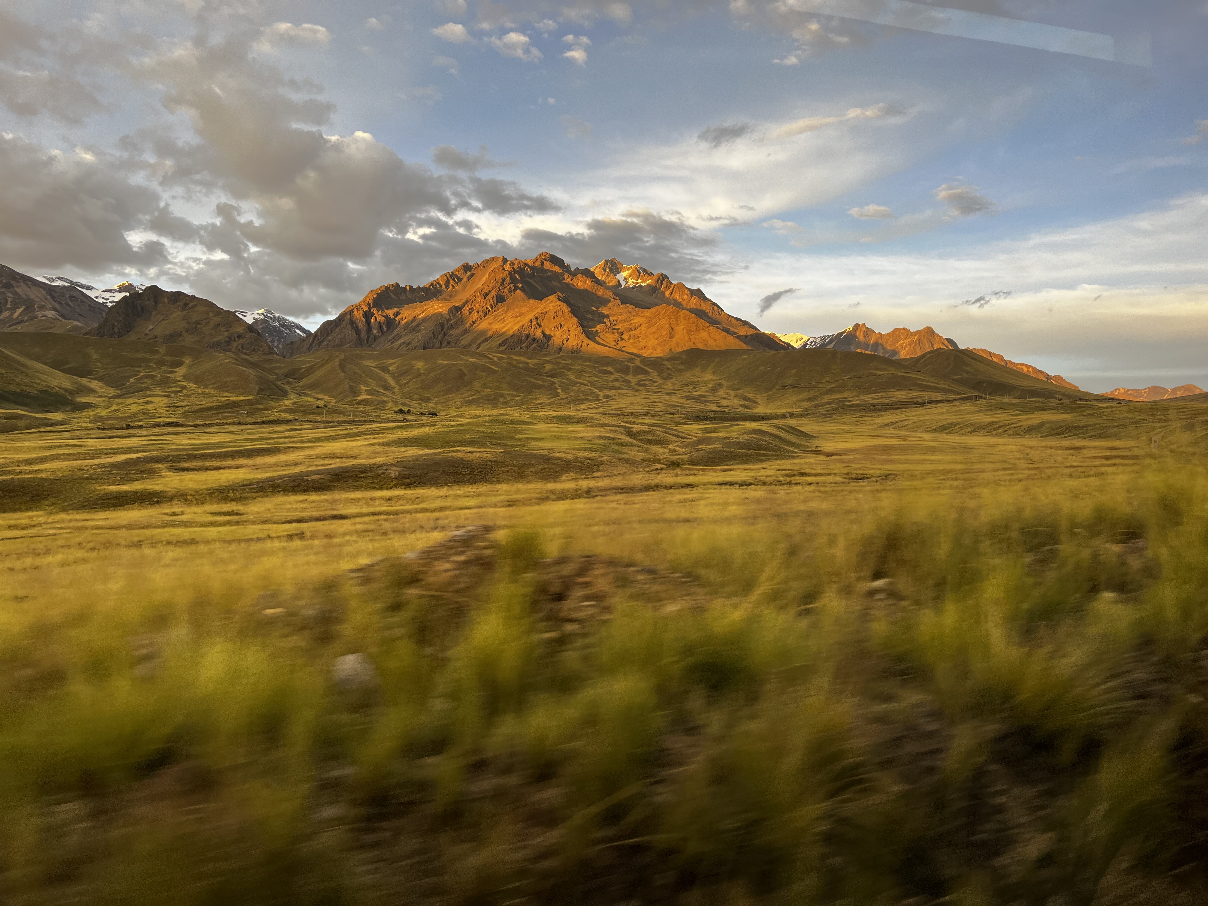Traveling through cities we noticed people, dogs, homes and tiny cars as the sun began to cast its deeper golden shadows. Its hard to choose the best photos as so many are as stunning as the scenery. The beauty of the Peruvian countryside as we headed up the the top of the world…or so it seemed…revealed hard working farmers, eager kids who loved seeing us, colorful buildings and churches and beautiful golden hills. We encounter a truck on the tracks and had about and hour delay so we arrived at the top of the river just at dusk – in time to see the local “makers’ and artisans. When we reached 15,700′ we stopped for these artisans and then began our trip across the Altiplano into Puno and Lake Titicaca to arrive late at night. Our softest scarves were purchased very inexpensively from these wonderful artisans. I want to go back just to fill up a suitcase with more! Carry on is important…but maybe an extra bag purchased locally for the last trip home?
