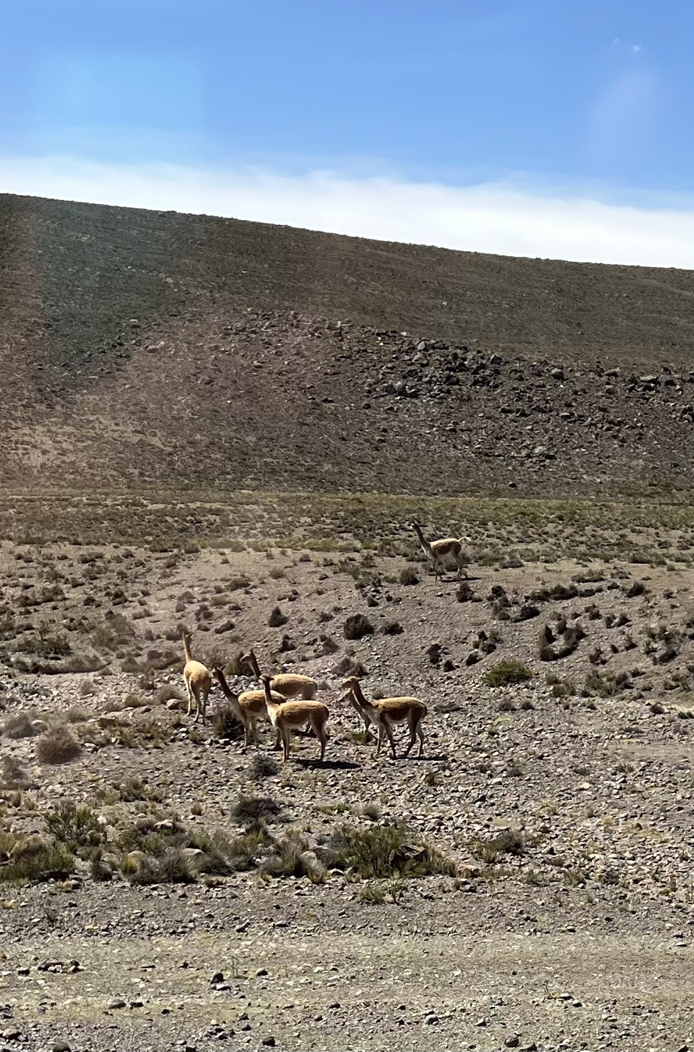 One does really feel on top of the world as one descends into the Colca Valley. The high plains had all the camelids that the local tribes raise for their valuable fiber. Vicuna’s are the softest and smallest camelid and a highly protected animal. They only live in these mountainous regions at altitudes between 12,000 and 16, 000′. They produce small amounts of extremely fine wool and it is very expensive because the animal can only be shorn every three year and has to be caught from the wild. It is now the national animal of Peru and appears on the Peruvian coat of arms.