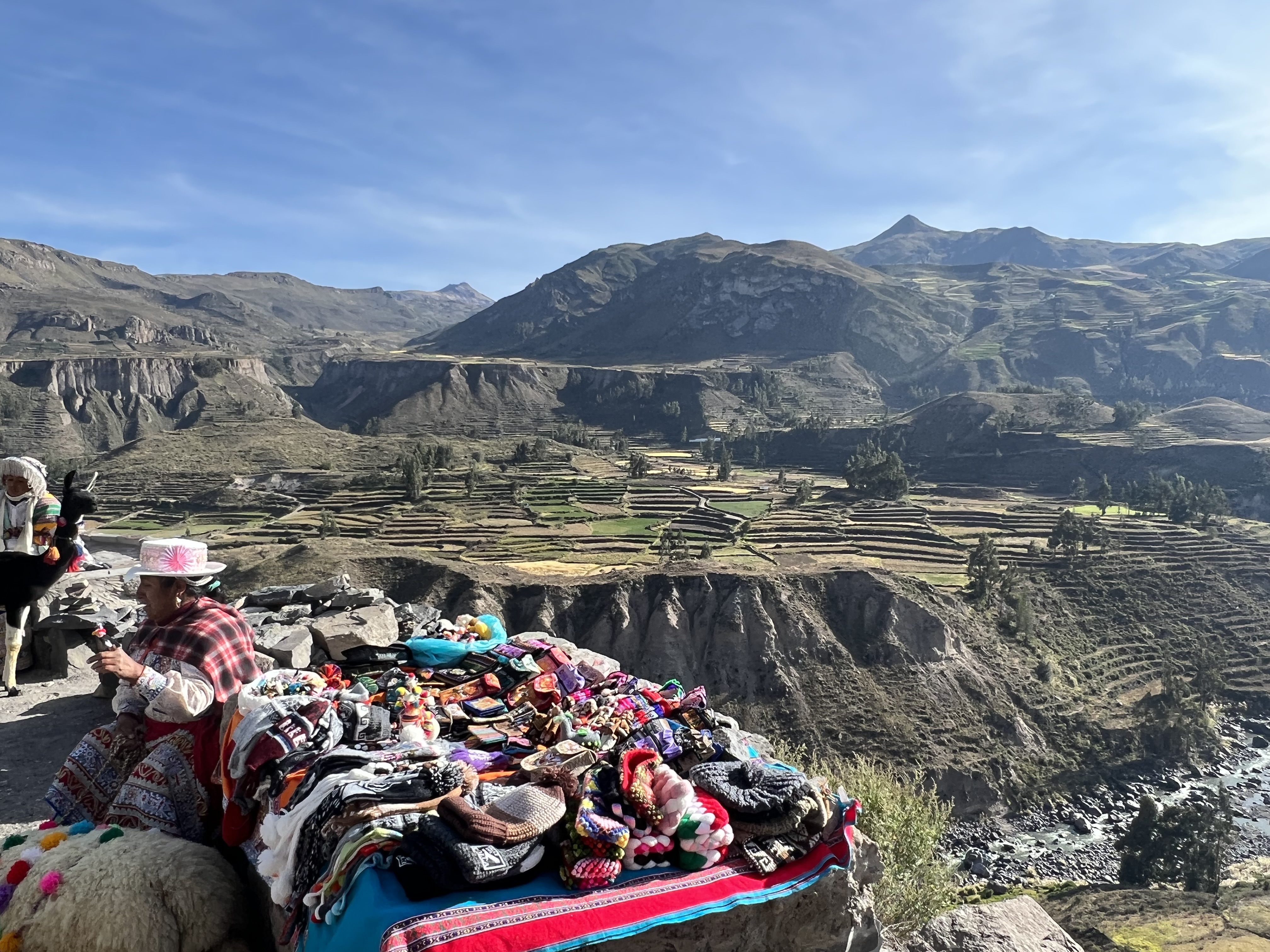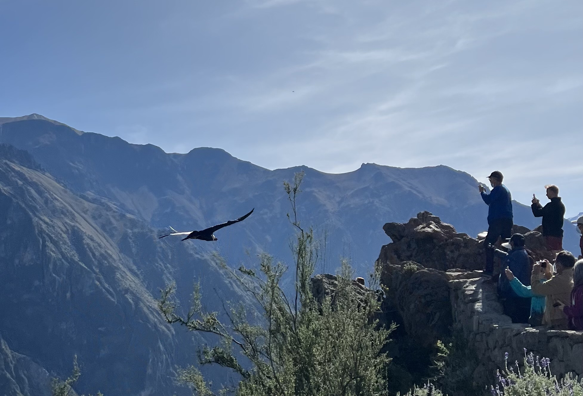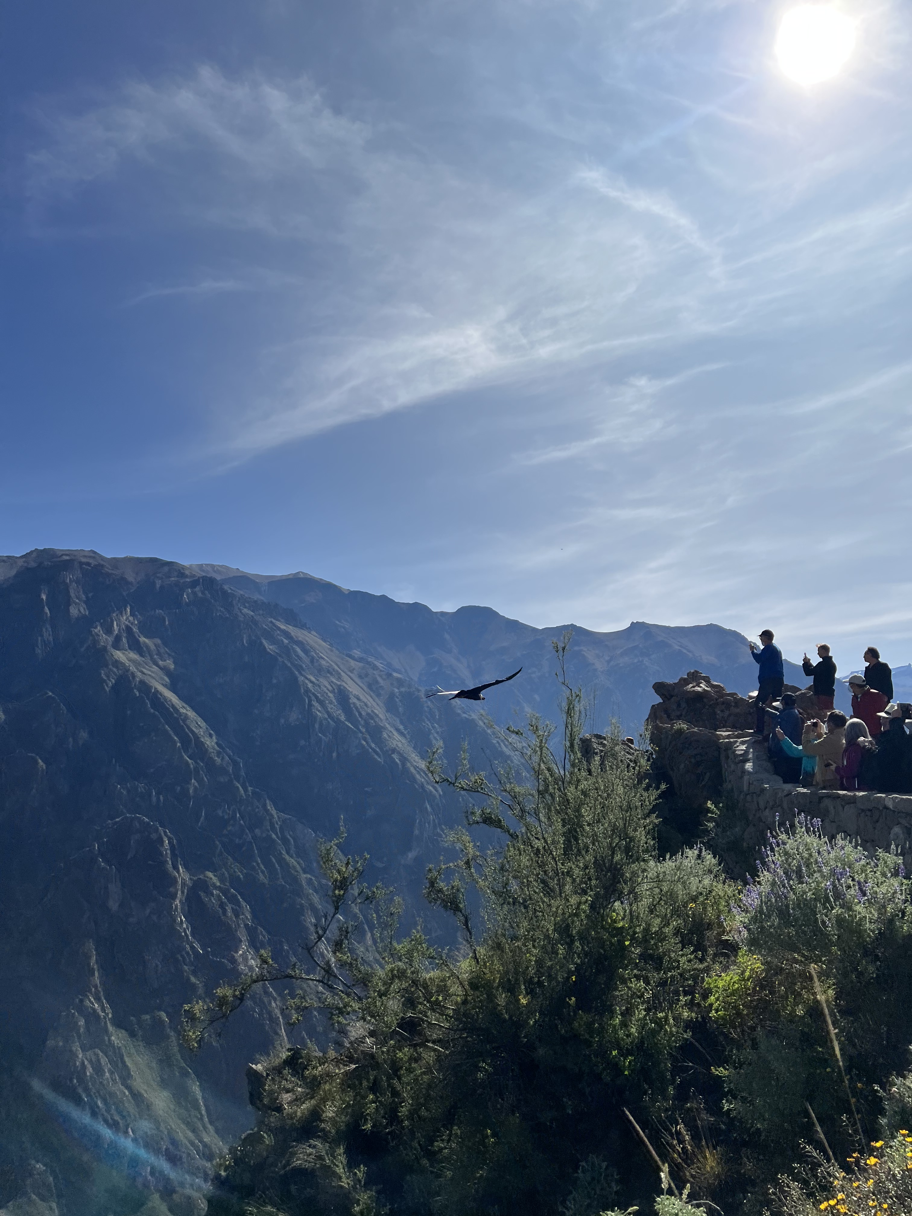 As you can imagine this is a place that attracts visitors from around the world. You can see the Condor Cross that is placed in the ground where folks gather. Catholics over the centuries have tried to put up crosses everywhere in South America and we were told in Cusco, many crosses were often removed by the locals indigenous people in the middle of the nights as they felt it was inappropriate since there were often place at Incan religious locations. This cross has remained and is a very notable tourist site. Amazing to see these massive Condors fly up and over those of us who were standing near the rock walls. I wish we had arrived a little earlier but at least the time we spent there was amazing.