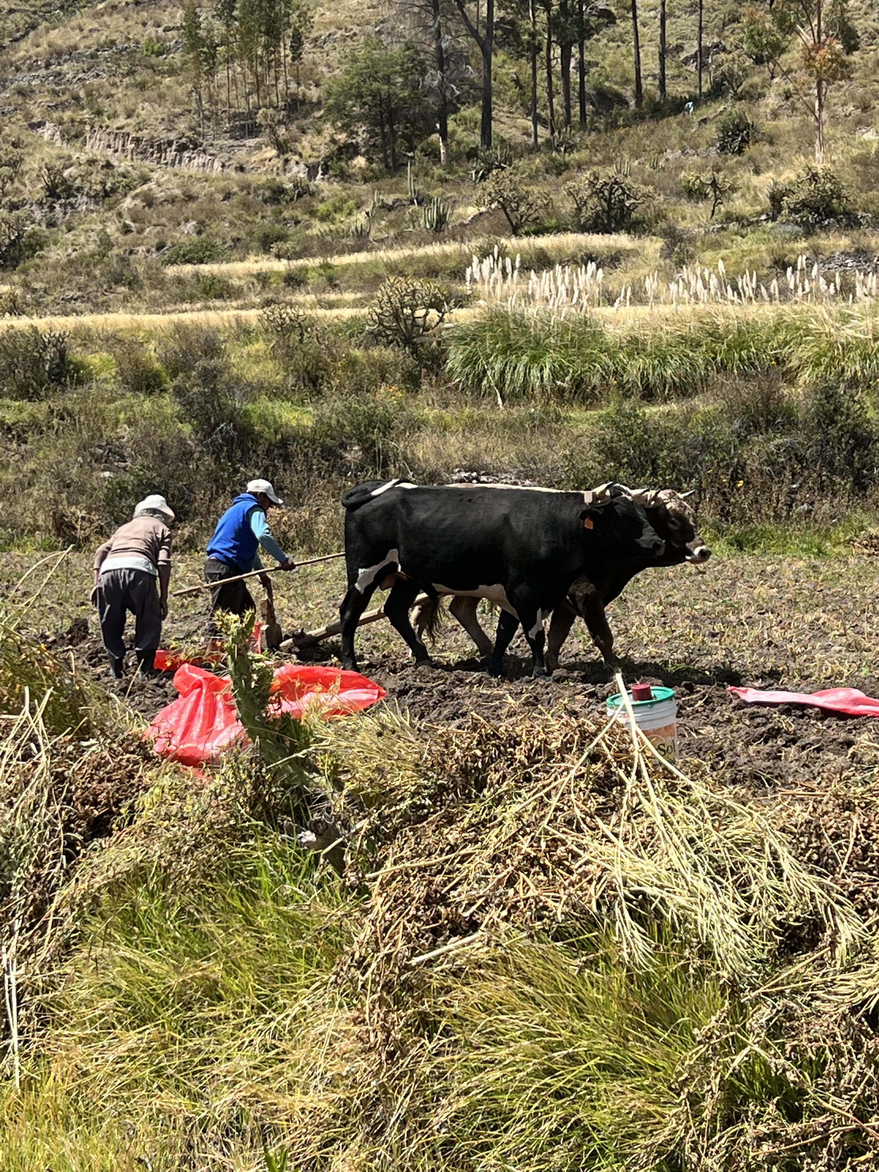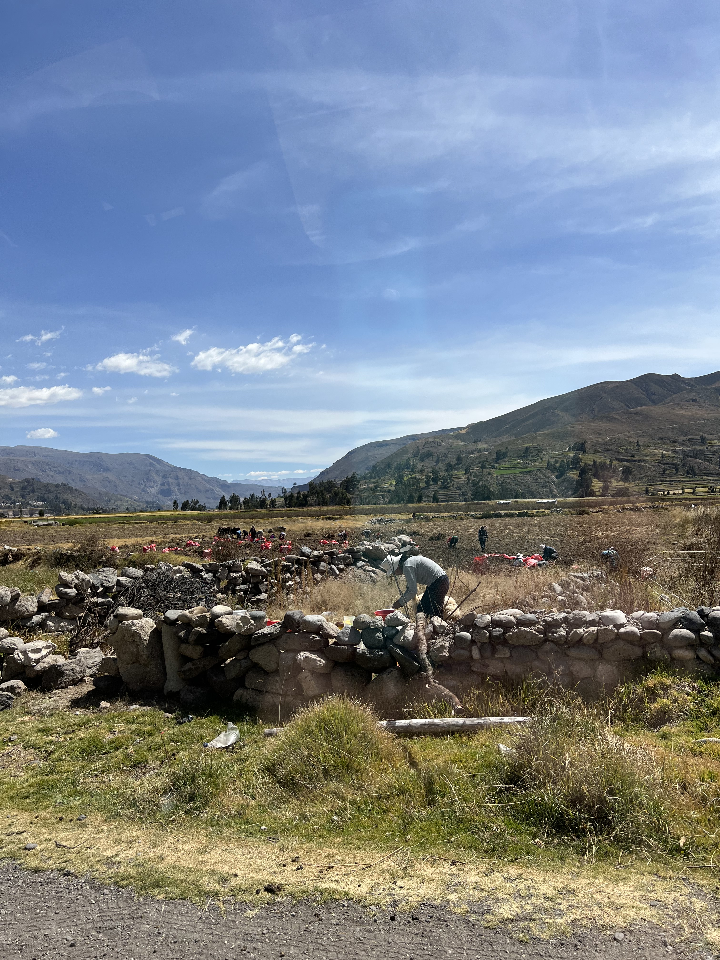 The cows help plow up the potatos and it must be back breaking work to load them in the red bags. We assumed it was potato harvest time! Lunch, while local food, was unmemorable as it seemed more like a linoleum cafe for masses of buses off a tourist ship. The toilet was a blessing though!