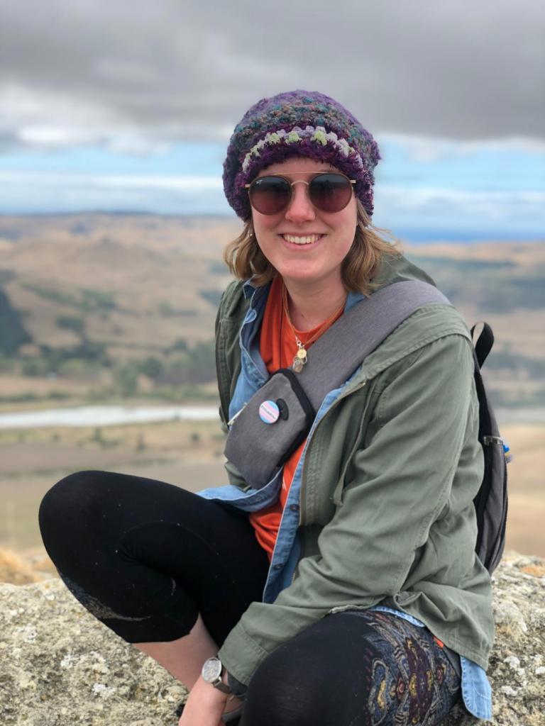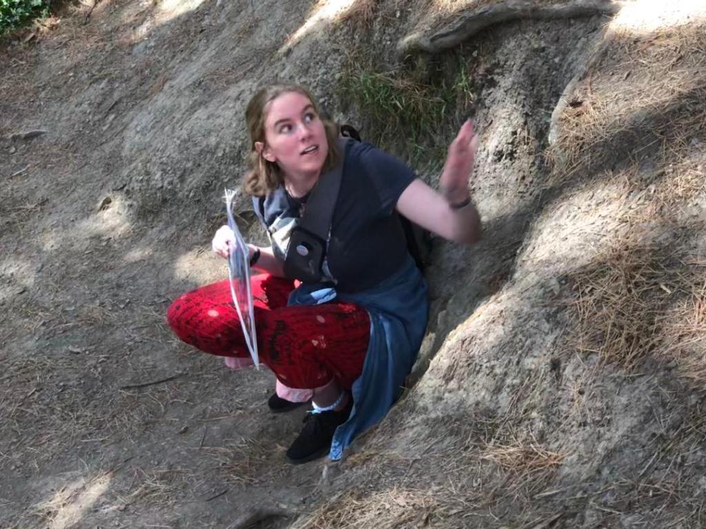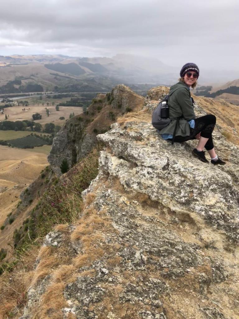 Mt Victoria above Wellington and Larkin in the little cave on the walk