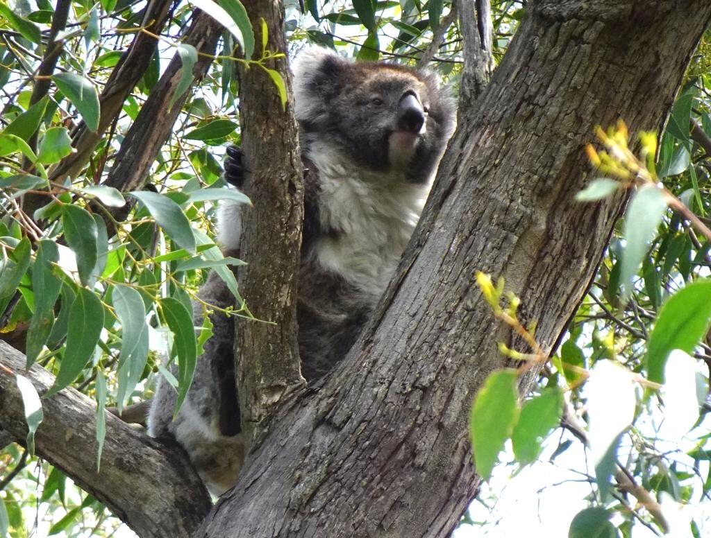 As we walked back to our bus at Mt Lofty this little koala was up a tree snoozing in his native local. The koala photo was taken by a fellow excursionist. The little Koala turned away right as I was taking the photo…I have his back side – thank you very much.