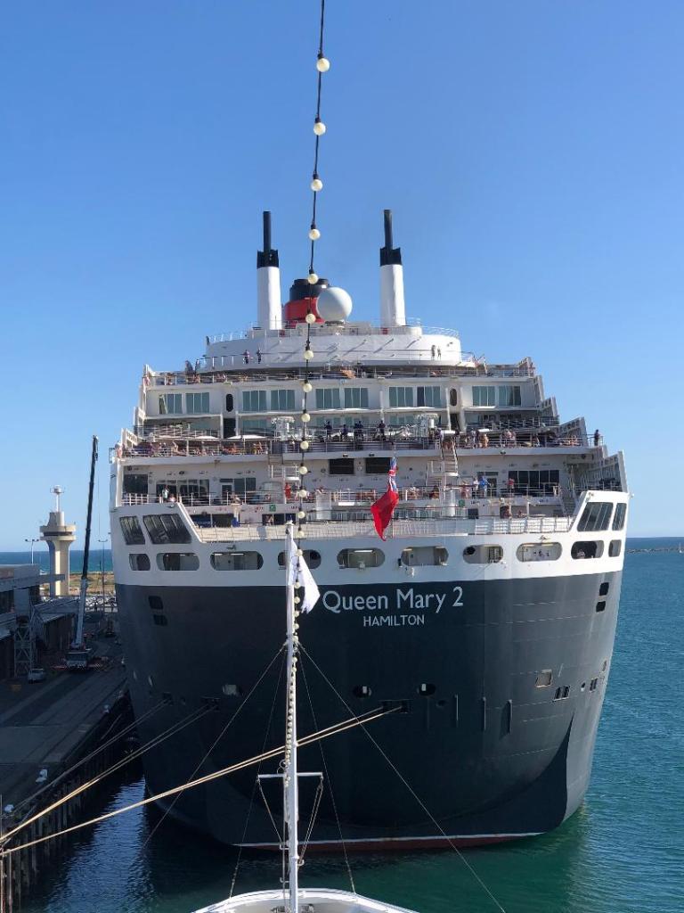 We also woke up the next morning to the Queen Mary 2 pulling in front us. We heard they sailed from Sri Lanka to Sydney – but it may have been Fremantle – in one fell swoop over 14 days, but not sure if that was true. If they did and no one got sick then they definitely had no issues entering Australia. We have a feeling we’ll have quite a few more sea days than we expect and we look forward to it!