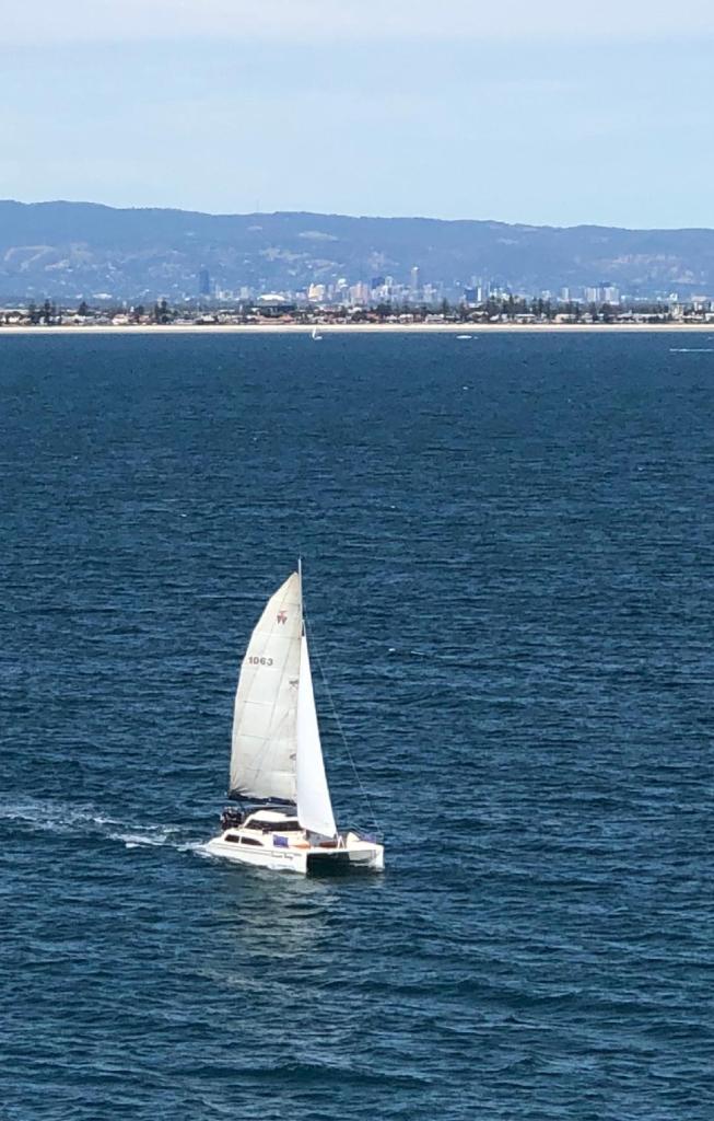 Sailing on holiday Monday with Adelaide in the background , Algae balls near the beach, the Queen Mary 2