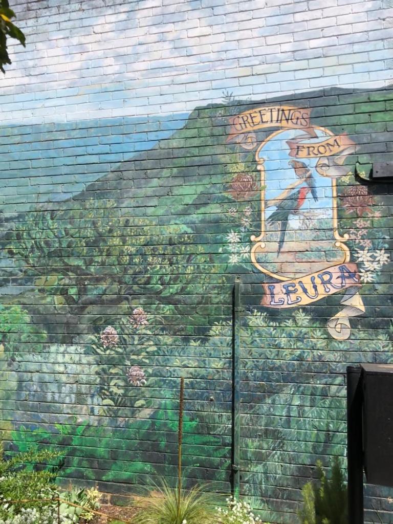 Art in Leura, a post box and graffiti with a view in Katoomba