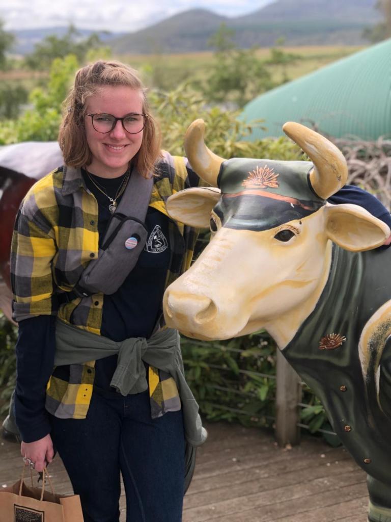 Double Vision Brewery is owned by the studio and it must keep the minions on Miramar very happy! After we finished touring the Weta Workshop in Miramar we headed to Mt. Victoria to hike to the sites of filming and then the gorgeous view from the top. Larkin was one of the brave ones to go down to the almost cave and have her photo taken. Our guide would show us photo from the film and the Monterrey Pines in the backdrop to the film that are still in the forest. When they needed leaves they realized pine tree only have needles so they went to the Wellington Botanic garden and picked up oak tree leaves. The forest photo on the left is fairly flat with Wellington in the background. The forest photo on the right is actually very steep. When we watched the film that night we saw the trees and it made it personal. The black rider was near where our bus was parked. The director couldn’t figure out how to get the horses exhaling and be able see it but not the rider who is suppose to be dead…one of the extras had a snorkle in his car and suggested it would work – voila he gave it to the rider who put it in his mouth and back down his back. Problem Solved.