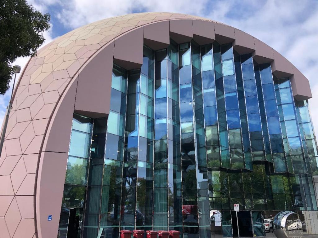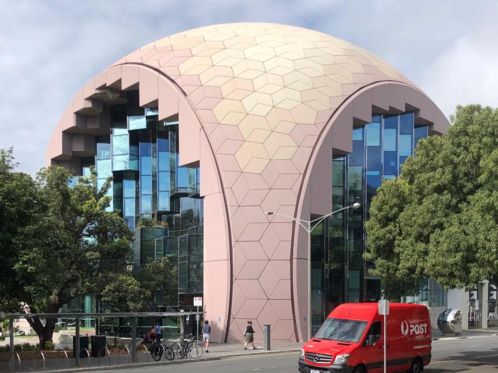 After the Gaol we had lunch near the pier with Gail and Russell and decided to Uber to a wool shop. Larkin and I both have started knitting. We have no idea how many days we might have on the open ocean as our ports keep changing. Might as well have a new hobby or two. After we headed back to the center of town, we stopped by a government building and found a stunning Venetian glass mosaic which reminded me of a mosaic in Philadelphia. The Art Museum which was across the street was unique in its architecture.