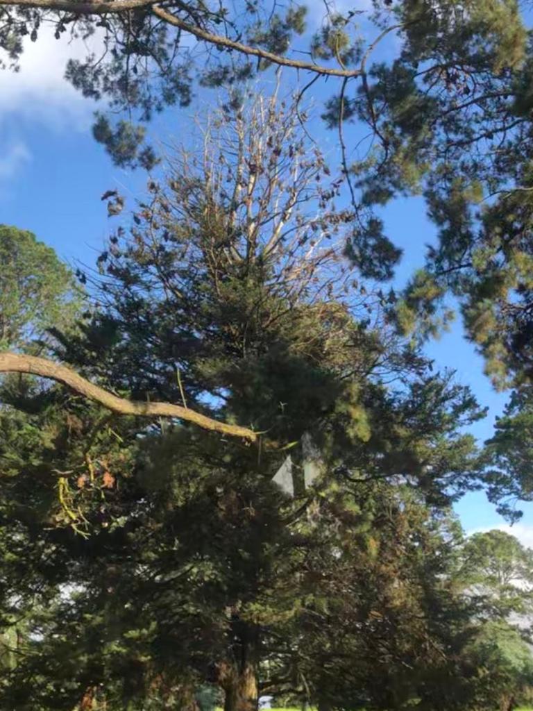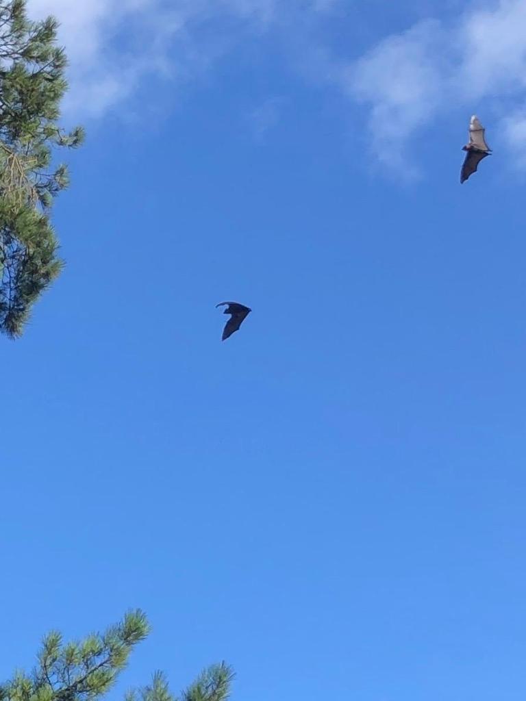 Bats driven out of Melbourne are welcome in Geelong but a honk sends them flying from their perch in the tree
