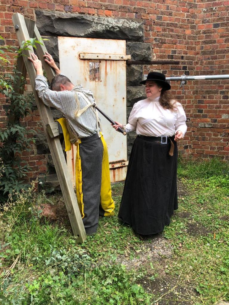 Next up – the GAOL! We had a wonderful walk about at the Gaol with characters telling us the stories of the previous inhabitants. Larkin and other cruisers were able to feel what it was like in solitary confinement. The three sisters was the place out back where prisoners received floggings with a whip of their own creation. It was not pleasant and women were not immune and received even worse floggings. This prison was not closed until 1991.