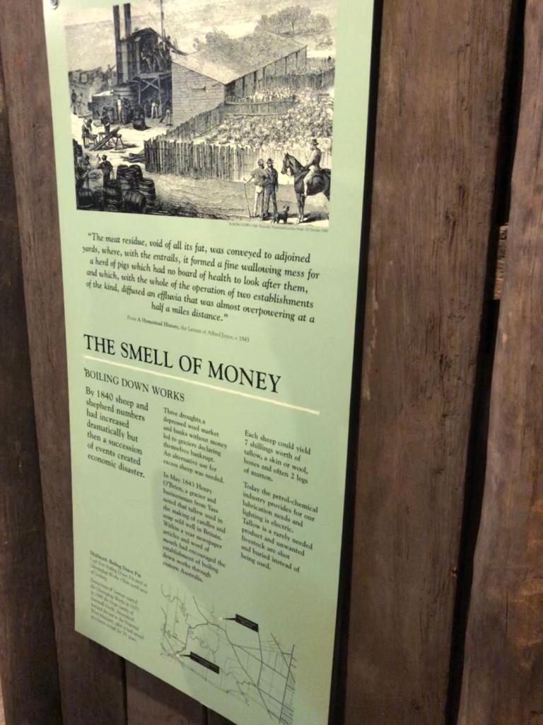 The Wool Museum was staffed with docents who had a passion for what they were sharing. Larkin had an almost private tour and the woman came up to me and said how delightful my daughter was and that she should be able to buy anything she wanted in the museum store. Delightful actually it was. Needless to say we did find a few things to spend money on. I remember the smell of money but it was actually the paper mills in Pine Bluff! Women actually had an important part of wool history in Australia including breeding! The left side of the pano spool picture is where Charles was standing at the loom.