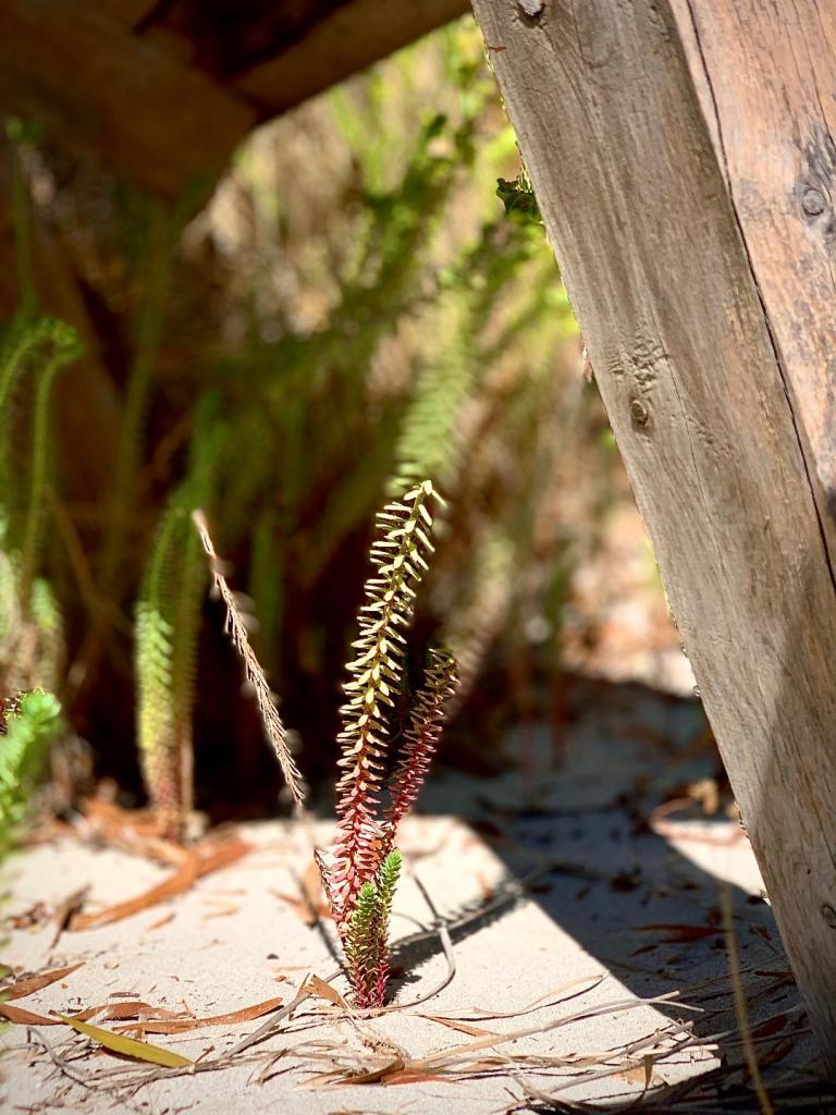 Larkin got a cute photo of a plant. I actually put my feet in the 18 degree centigrade water – you get used to it and the few people that were there were having fun at the beach!