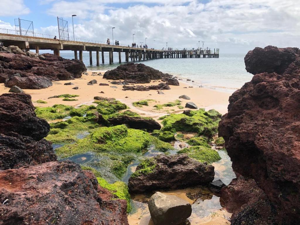 After berthing on the Adelaide Cup Monday holiday weekend, Larkin and I walked the pier at Port Adelaide and headed down to the beach for our sand. We had to walk through all these unique little balls which Larkin researched and found out were called algae balls. Very interesting. Worth researching. Not at all bad things.