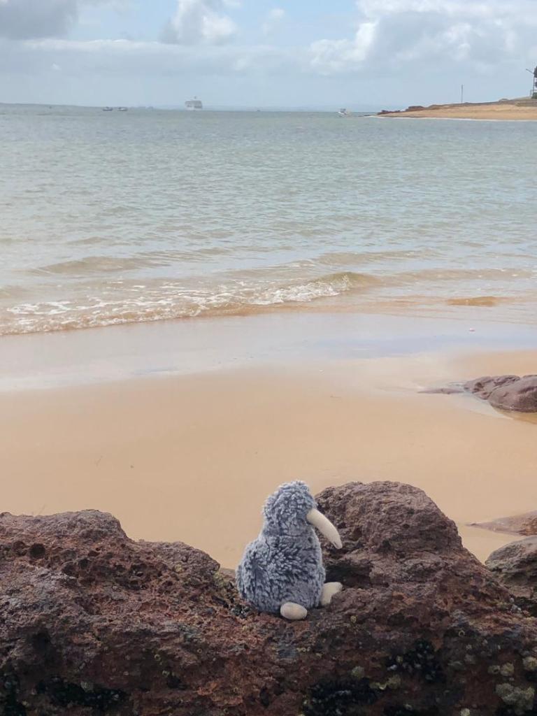 Kiwi at the beach with the boat in the back ground, DID YOU HEAR WHAT I SAID and Kiwi at a mini waterfall