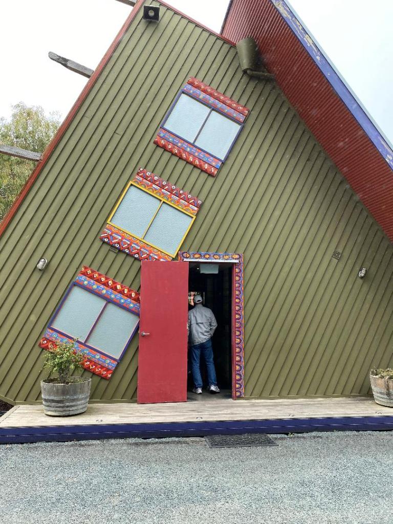 As we drove around Wellington on our way to Weta Workshop in Miramar, we passed a few unique painted walls. The one on the left is called the Shark wall that is famous enough it could be the Shark Selfie wall. The middle is a “lift” and it is how many people on this steep part of the city get to their homes. No garage…no stairs..just a lift. I answered the questions correctly when he asked how do you think people get their couches and refrigerators up…helicoptered in on a nice day like the day we were there. This little area reminds me of Sausalito near us north of San Francisco. Normally the wind screams at about 30 miles an hour. They have a fountain in the Bay that only works at under 20 miles an hour – so we saw it running! It was yet another amazing day of weather off the ship!