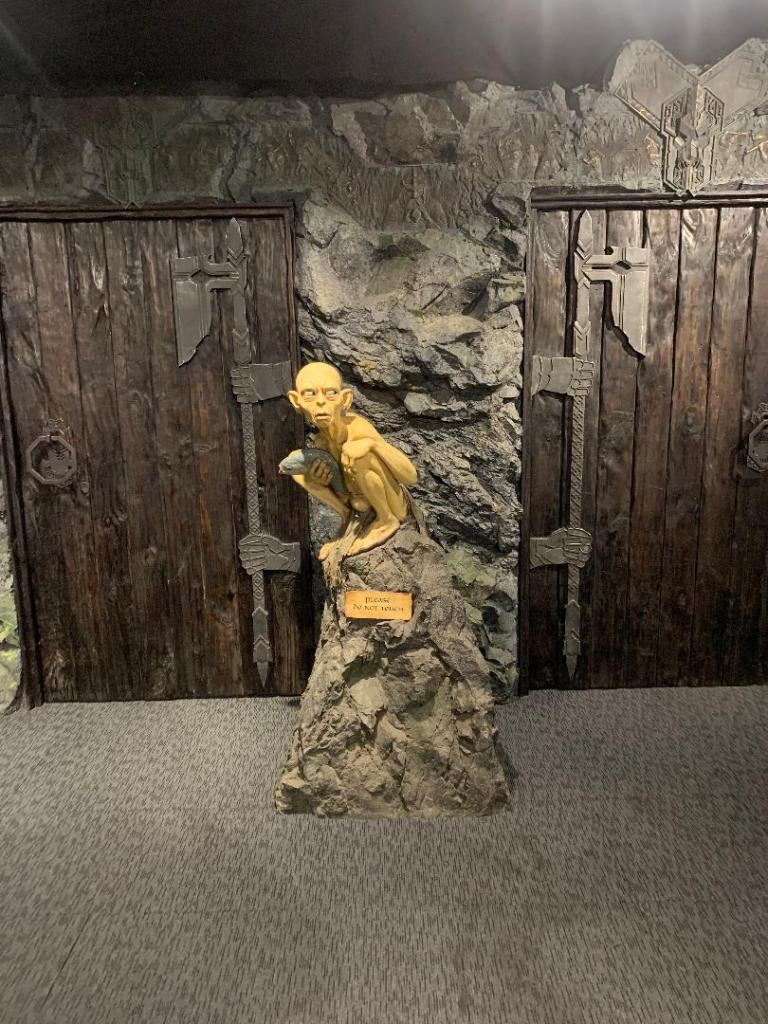 If you look at the photo on the left at the bottom you can just make out the Wellington sign. The bus drove right by the sign into the little split between the hills to reach Miramar. This community can create a movie from start to finish. Amazing what a few creative locals can do to create a needed industry. New Zealand is now famous for its Hobbit and Lord of the Rings (LOTR) movies. We were able to see filming sites in 2018 on our trip to Queenstown and the south island and now we have been able to see Weta Workshop where they created so many feet, hands, noses, helmets, arms, swords, you name it, they can create it. We were not able to take photos of the great props as they don’t own the license to many of the items.