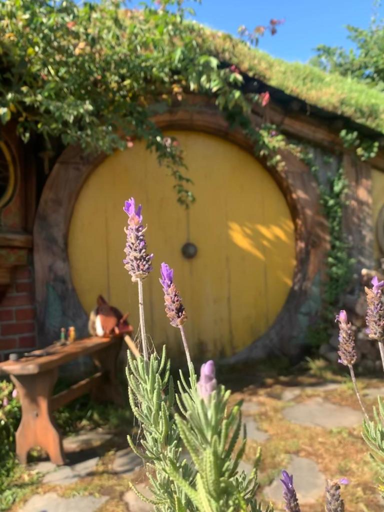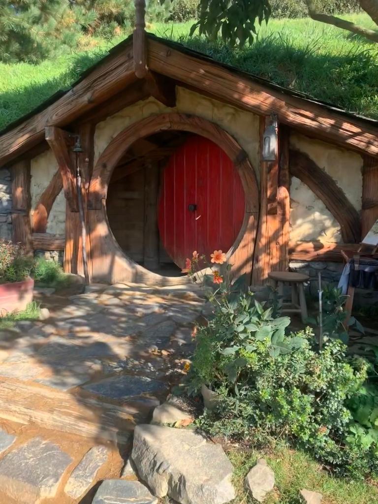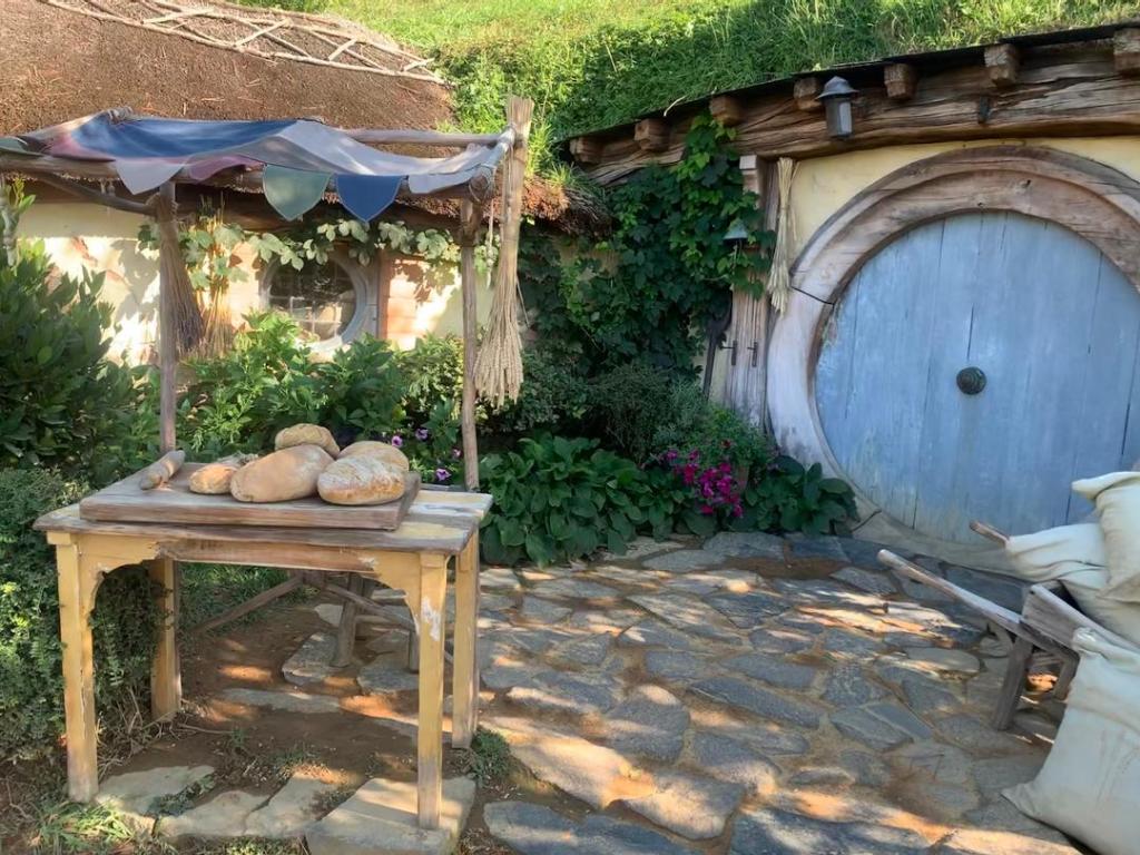 During the second filming the tree above Bag End was the wrong size so they cut it down, put a fake one in and voila – oops no – the director said the color of the leaves was wrong so the set designers had to paint each and every leaf the proper color. That is not a job I would have wanted. It now looks like a proper oak tree.