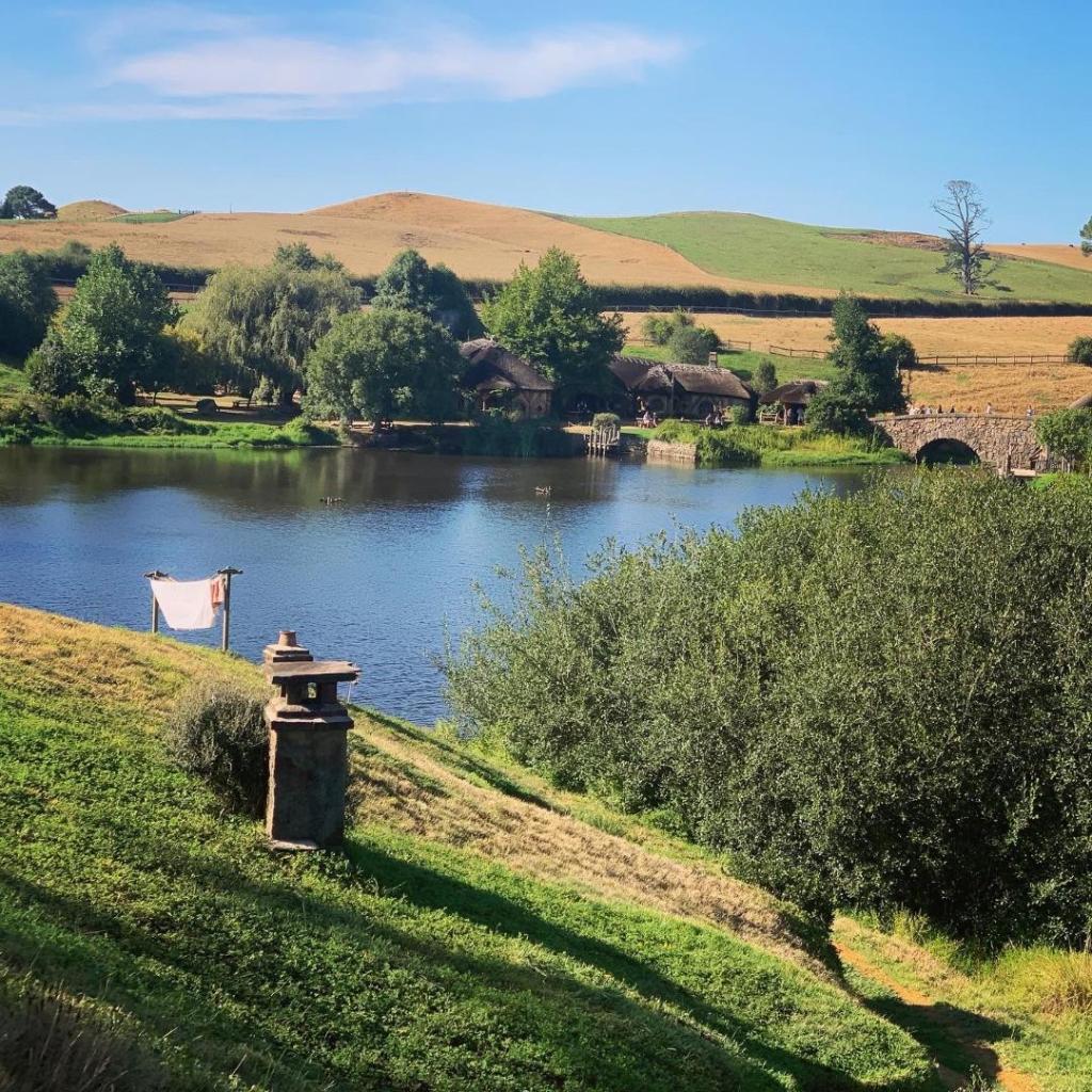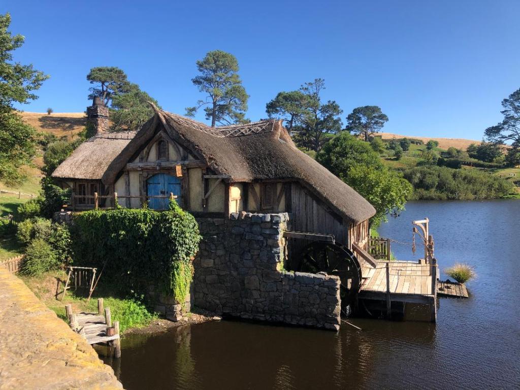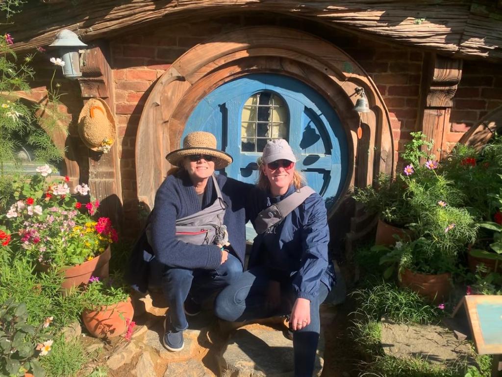 Hobbiton is a working farm with sheep and cows etc. Peter Jackson found the location with its lush green rolling hills and pastures while flying over in a helicopter. He noticed how it looked like JRR Tolkiens descriptions of Hobbiton in his books. The New Zealand army helped build the temporary set including bridges. When they finished filming at this location they began to tear down many of the hobbit holes but they left 17 as bare plywood facades. With these left they started public guided tours in 2002. This all changed as they needed to film again and they built 44 permanent Hobbit holes. Some were built into the hills and others were covered with dirt after being built. In 2012 they built the Green Dragon Inn and it was our the final destination with scones, muffins, and a ginger beer they brew as well as a local apple cider. The ginger beer was wonderful! The whole experience was movie magic. Larkin binged watched Lord of the Rings and the Hobbit on our sea days. I read while it was running…as i write this we are watching The Hobbit yet again . I am getting it – finally – I think. Maybe I should try to read the books again! Amazing how many of our 60 plus year old passengers are huge fans.